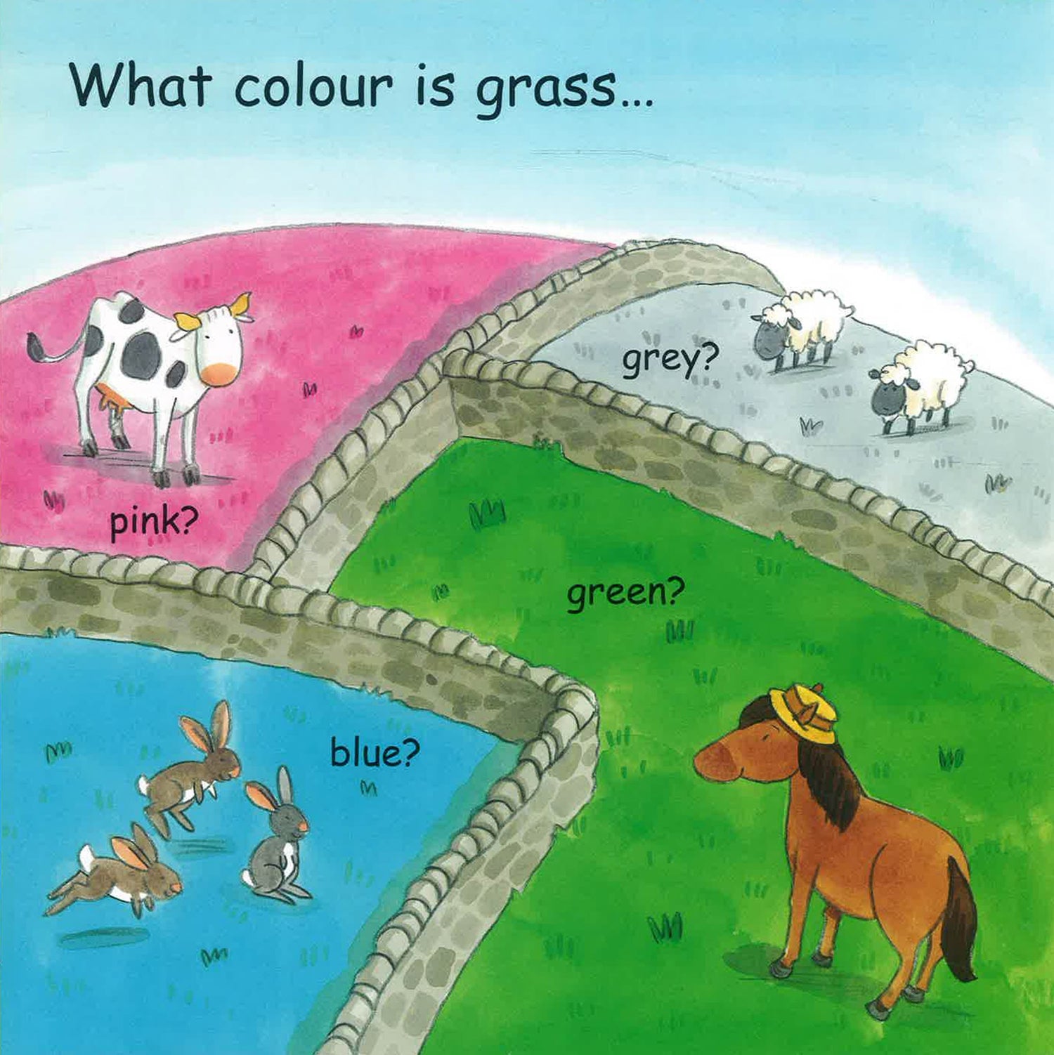 What colour is a banana? Is it yellow, red, orange or blue? Push aside a green leaf and find out! What colour outfit does Father Christmas wear? Is it yellow, green, red or purple? Lift the lid of the brightly wrapped present and see! Is grass pink, grey, blue or green? Open the gate to the next field and all will be revealed! Do you know what colour the ocean is? Is it blue, pink, orange or red? Draw aside the curtain of the hotel window and discover whether you are right! What's the pattern on a penguin? Is it green and grey, brown and yellow, black and white, or purple and red? Look behind the whale's fountain of spray to learn the answer! With exciting flaps to lift, words to recognize and something to laugh at and talk about on every page, this interactive question and answer book combines fun and learning for the very young.