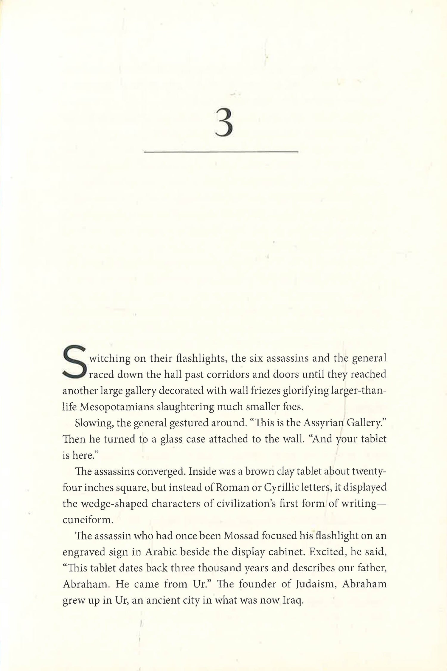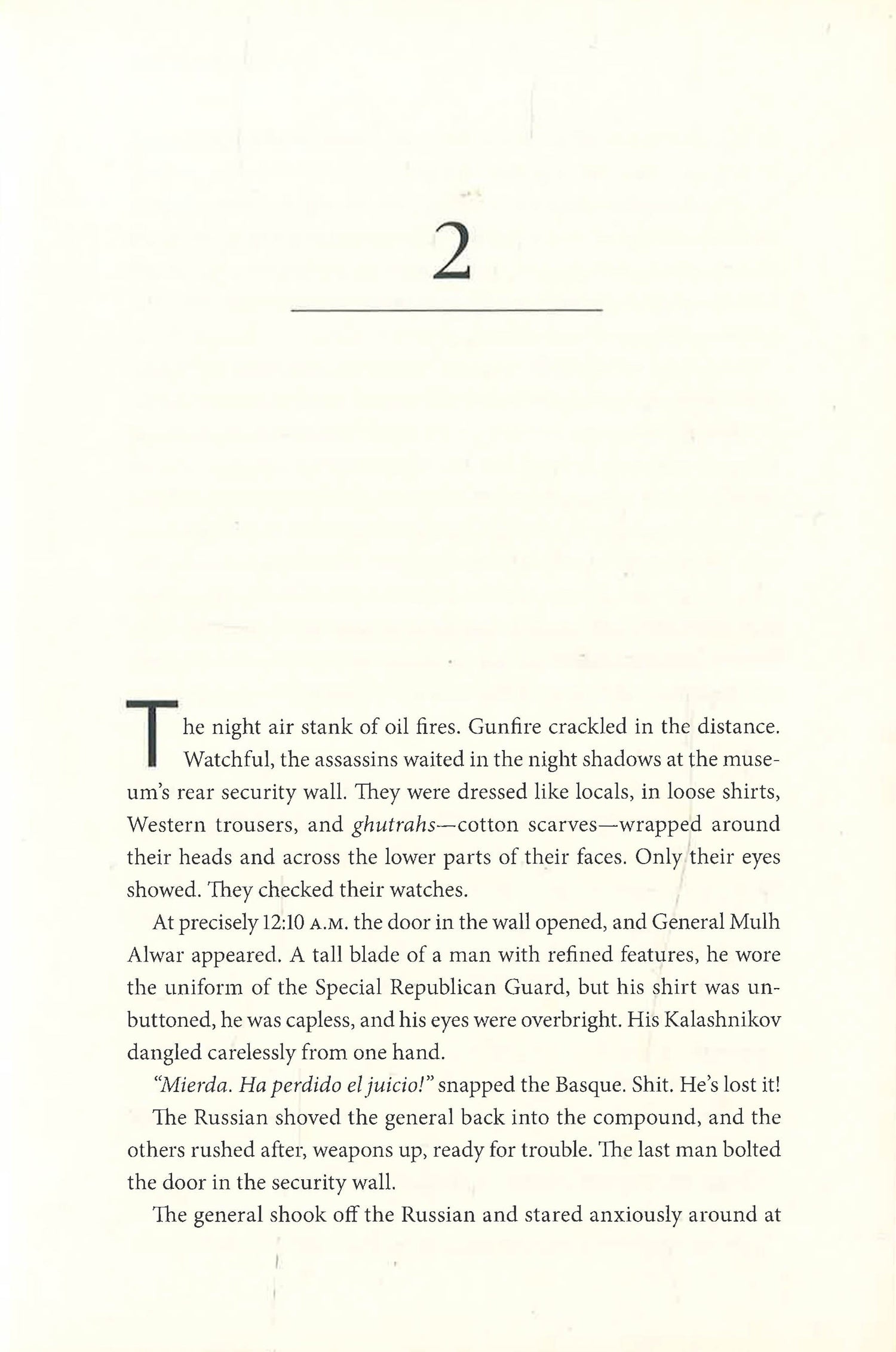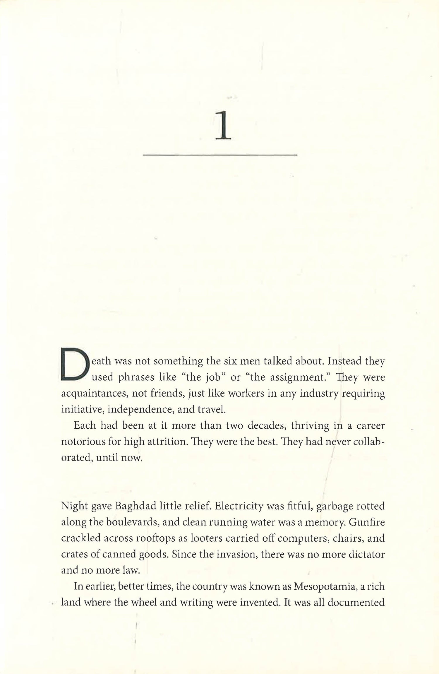 Six master assassins -- each a legend in the dark corners of international espionage -- band together to steal a fortune from the middle of a war zone. But the mission goes tragically wrong, and they retreat into the shadows. Now THE ASSASSINS are back. Former military spy Judd Ryder is walking to his D.C. home when he spots a man coming out of his row house who looks like Ryder and is wearing his clothes. As Ryder slows to follow, the imposter is killed in a hit-and-run that's no accident. Was the man the intended victim, or was it Ryder himself? Soon Ryder learns that the key to the mysterious events of the past and to his double's murder is an infamous Cold War assassin, the Carnivore. Two of the last people to see the Carnivore were Ryder and CIA trainee Eva Blake, and someone is using them to lure him out. From Washington D.C. to Marrakech and Baghdad, the assassins wage a final battle -- this time against one another -- fighting for their reputations and Saddam Hussein's long-missing billion-dollar fortune. In the end, only one can be left standing. Caught in the crossfire, Judd and Eva go on the run while desperately unraveling the tangled past and battling not only for their lives, but for their destinies.