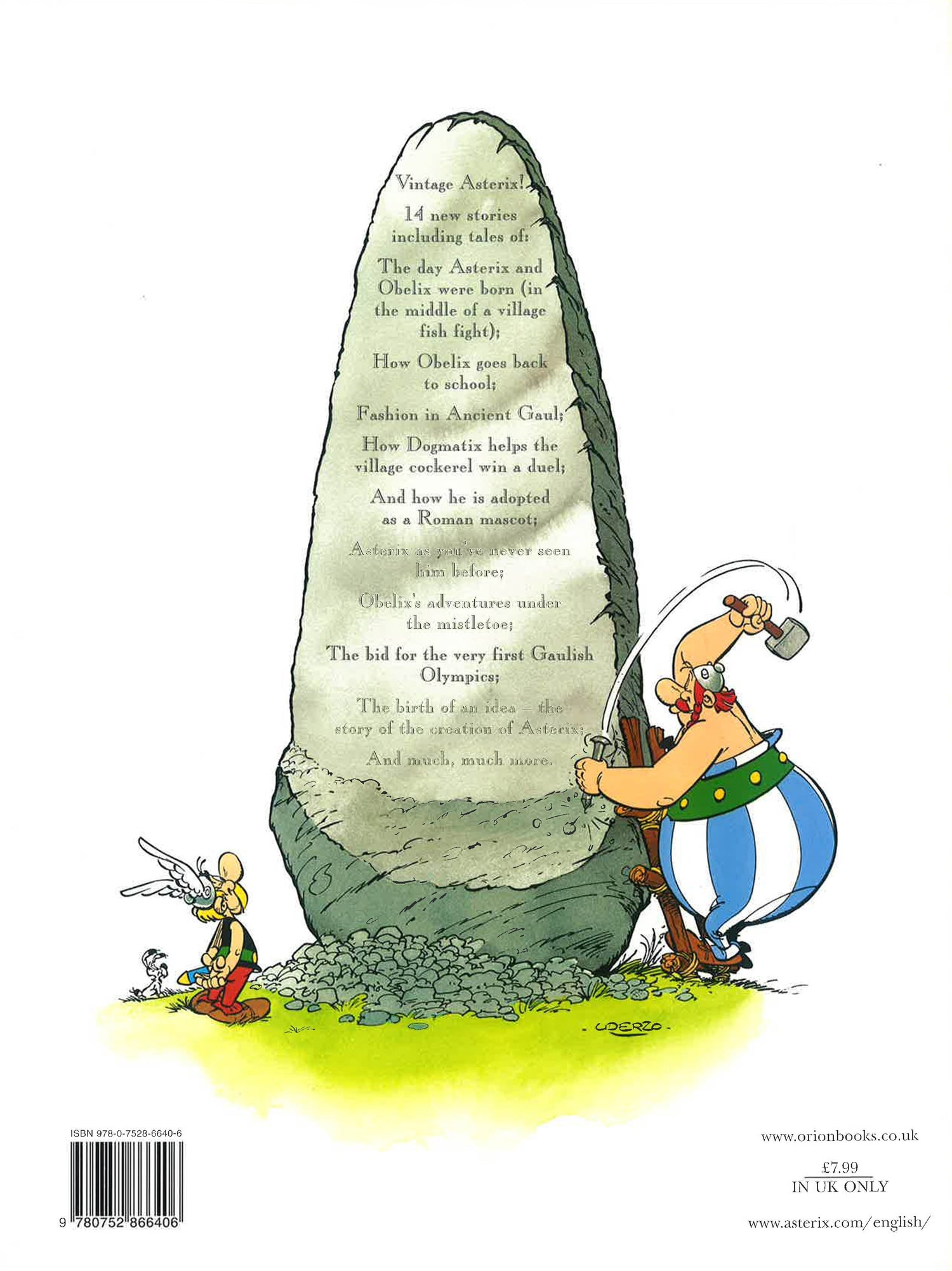 The latest action-packed adventure from our indomitable Gauls, Asterix and the Griffin, is out now! Vintage Asterix!Fourteen short stories including tales of:- The day Asterix and Obelix were born (in the middle of a village fish fight)- How Obelix goes back to school- Fashion in Ancient Gaul- How Dogamatirx helps the village cockerel win a duel- And how he is adopted as a Roman mascot- Asterix as you've never seen him before- Obelix's adventures under the mistletoe- The bid for the very first Gaulish Olympics- The birth of an idea - the story of the creation of AsterixAnd much, much more.