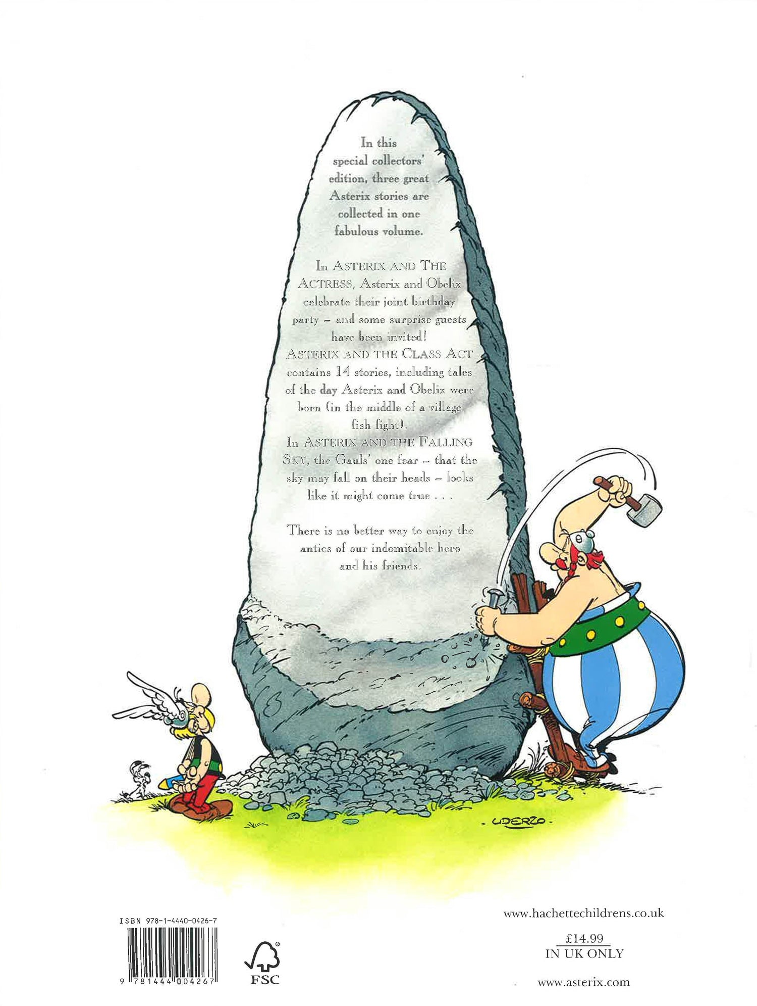 In this special collectors' edition, three great Asterix albums are collected in one fabulous volume for the first time ever. In ASTERIX AND THE ACTRESS, Asterix and Obelix celebrate their joint birthday party - and some surprise guests have been invitied!ASTERIX AND THE CLASS ACT contains 14 stories, including tales of the day Asterix and Obelix were born (in the middle of a village fist fight).In ASTERIX AND THE FALLING SKY, the Gauls' one fear - that the sky may fall on their heads - looks like it might come true...There is no better way to enjoy the antics of our indomitable hero and his friends.