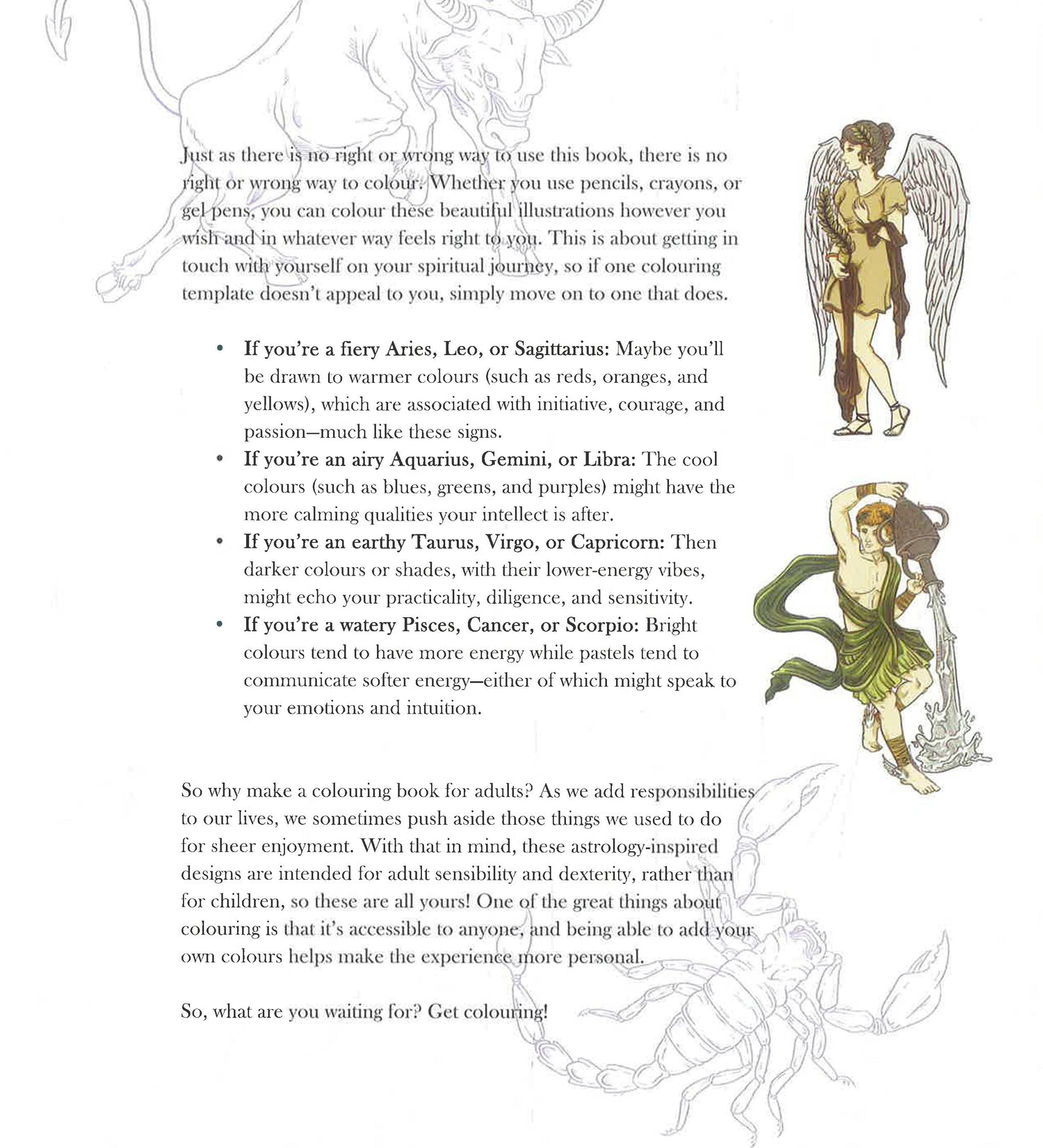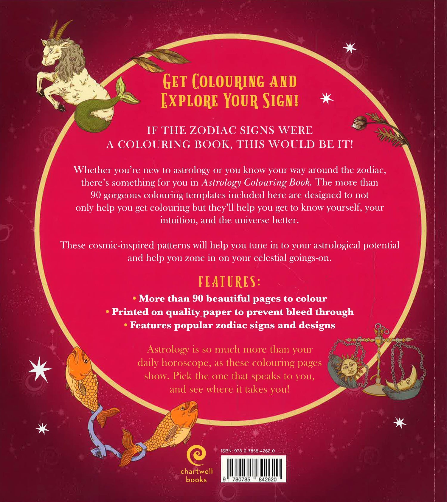 Tune into your astrological potential as your color your way through the zodiac! These captivating coloring templates will help you discover your celestial prowess as you mindfully color the unique and beautiful illustrations. Printed on both sides of quality paper so colors won't bleed through, you are free to use whatever coloring tools you desire as you get in touch with yourself on your spiritual journey. Whether you're new to astrology or know your way around the zodiac, there's something for you in this astrological coloring journey!