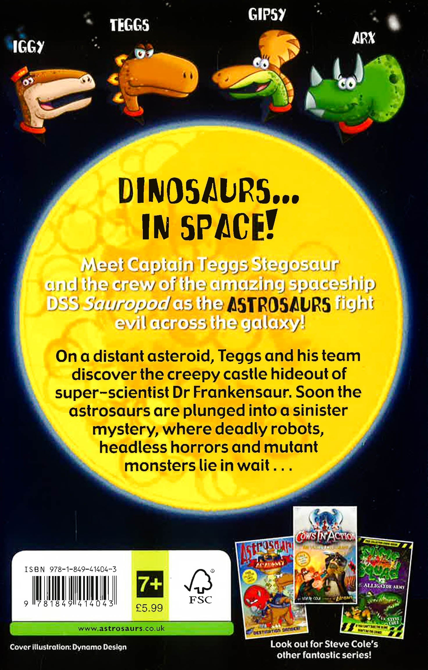 On the trail of carnivore space-robber, the astrosaurs find a creepy castle on a distant asteroid - the secret hideout of super-scientist Dr Frankensaur. Plunged into a sinister mystery, Teggs must fight deadly robots, headless horrors, mutant monsters and a threat to the entire cosmos . . .