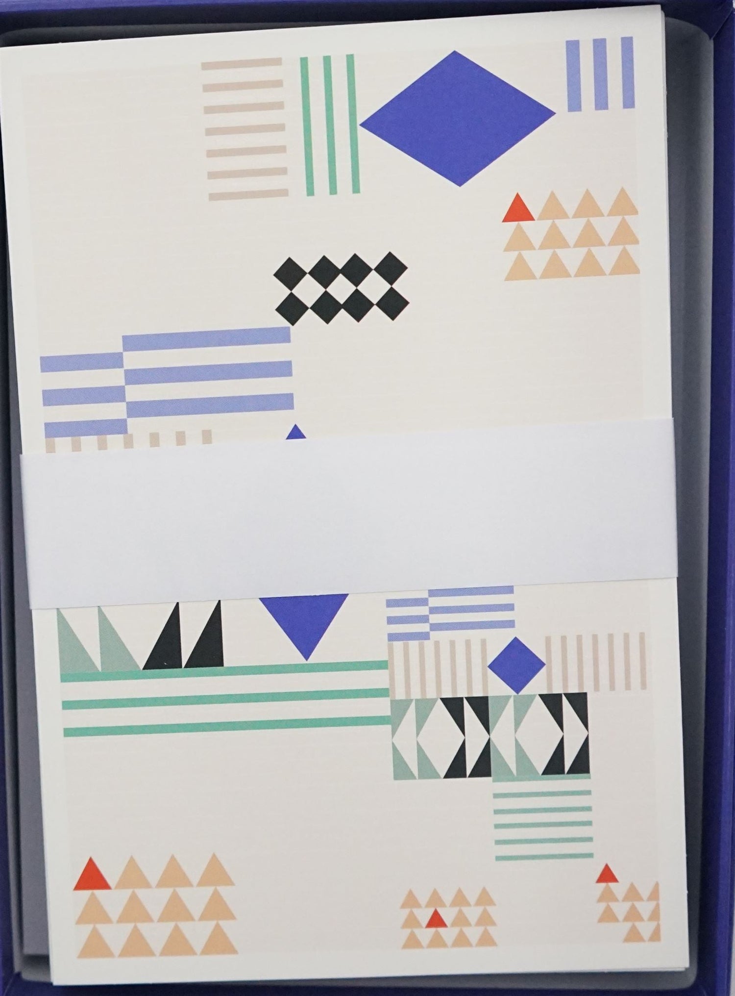 Send your best wishes with the beautifully reproduced artwork on these full-color full size Notecard Boxes, packaged in a large format 2 piece glossy reusable box. Our Asymmetrical Collection Notecard Box includes 5 geometric graphic designs for a modern take on stationery. Our museum quality Notecard Boxes are perfect to keep on hand for any occasion notes and greetings to friends and family. Our on-trend designs and high print quality make our cards the best value out there. We choose the best images from well-known classic and contemporary fine artists as well as talented up-and-coming illustrators and designers from around the globe. 20 notecards and envelopes, 5 each of 4 images. Packaged in a large format, glossy 2-piece box. Cards printed on coated paper stock to bring out their full color. Cards and envelopes bundled together with a paper belly band inside each box.
