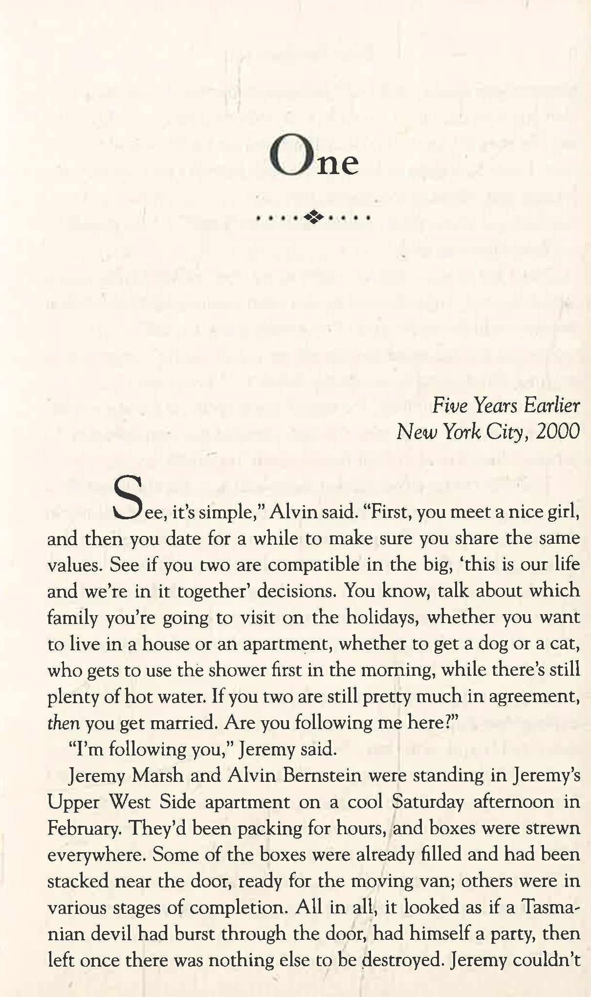 There are a few things Jeremy Marsh was sure he'd never do: he'd never leave New York City; never give his heart away again after barely surviving one failed marriage; and, most of all, never become a parent. Now, Jeremy is living in the tiny town of Boone Creek, North Carolina, married to Lexie Darnell, the love of his life, and anticipating the birth of their daughter. But just as his life seems to be settling into a blissful pattern, an unsettling and mysterious message re-opens old wounds and sets off a chain of events that will forever change the course of this young couple's marriage.