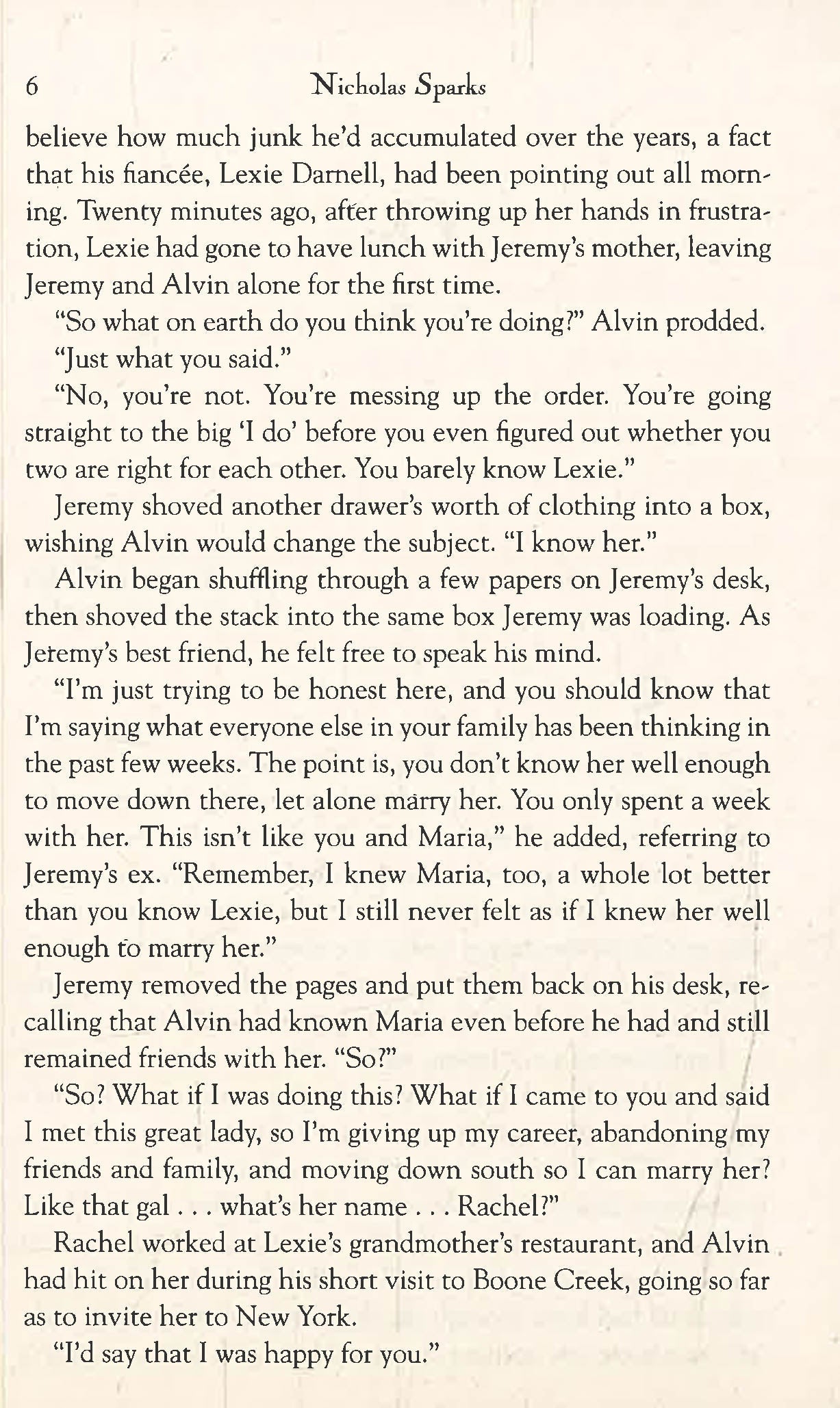 While the novel picks up the tale of Lexie Darnell and Jeremy Marsh that started in True Believer and will delight fans of that novel, it stands on its own as one of Nicholas Sparks's most deeply moving love stories.