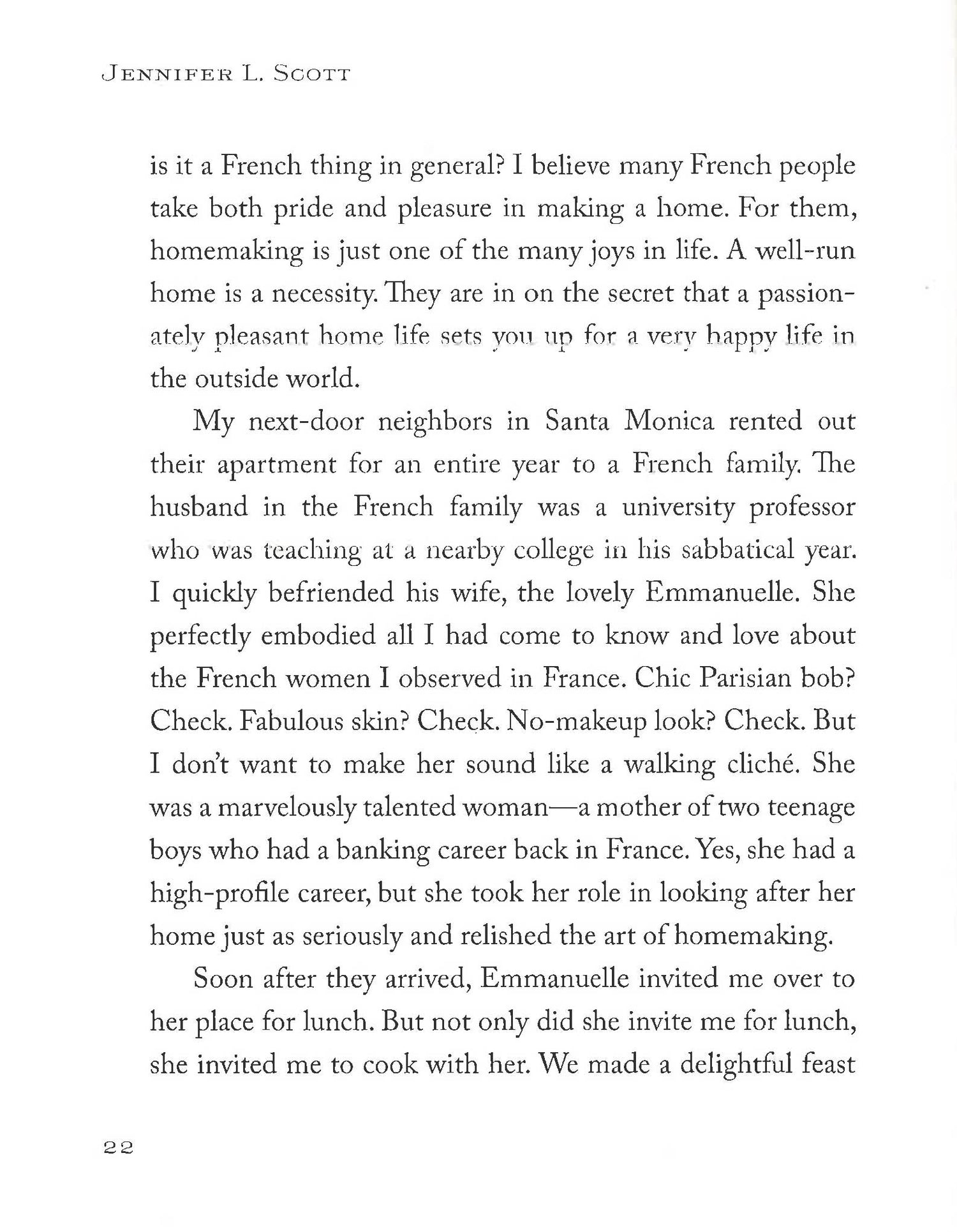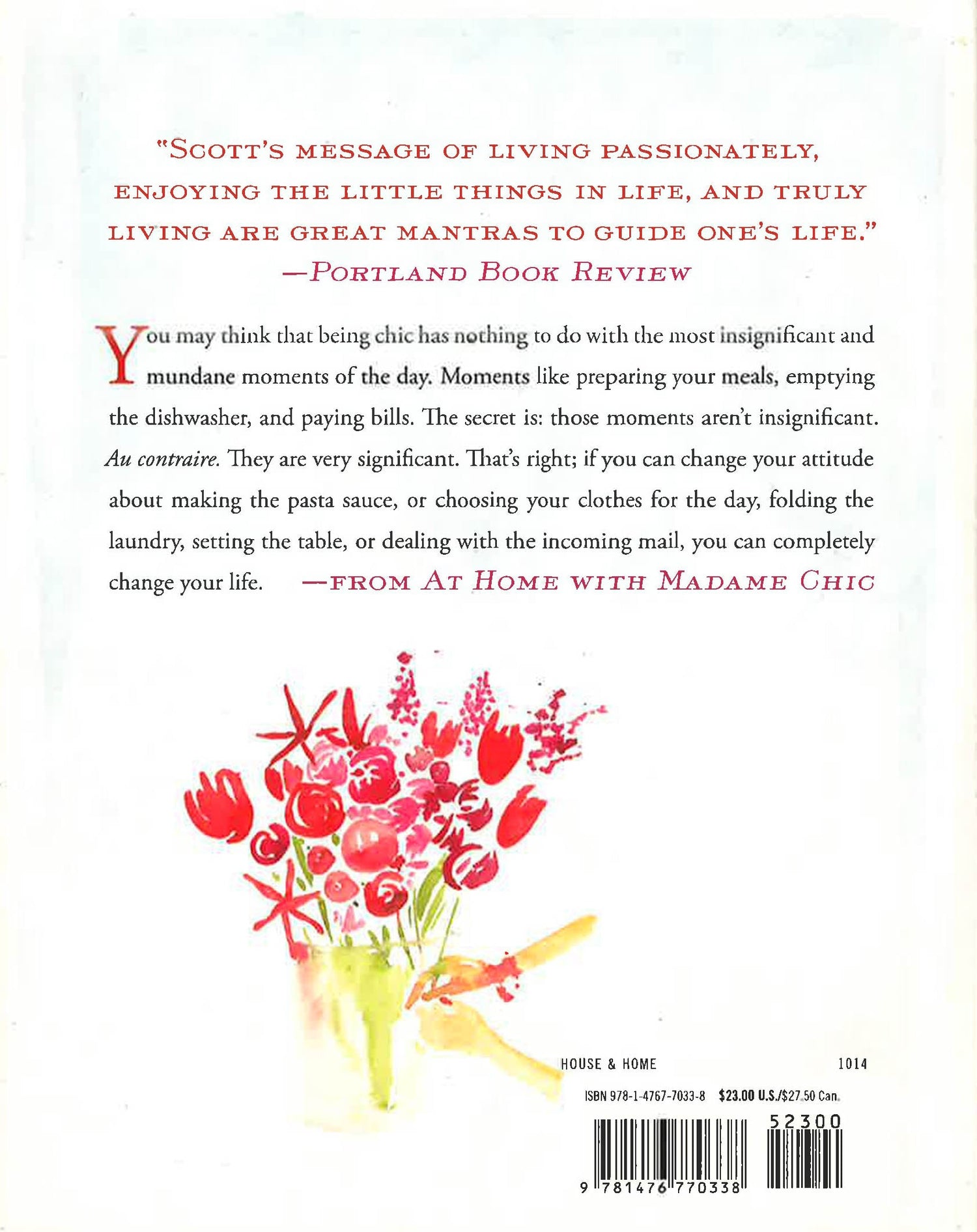 When she arrived at Madame Chic's Parisian apartment as a foreign exchange student, Jennifer Scott was a casual California girl who thought sweatpants were appropriate street attire. Madame Chic took Jennifer under her wing and tutored her in the secrets of how the French elevate the little things in life to the art of living. Years later, Jennifer was back in California with a husband, two young daughters, a dog, and her first home. Every day she confronted mundane duties like folding laundry and unloading the dishwasher, and she began to think about Madame Chic's home-how the breakfast table was set beautifully the night before, the music that always played in the background, the calm of Madame and Monsieur Chic's ritual cocktail hour together. Jennifer wanted that life. She decided to see what would happen if she didn't perform her chores impatiently or mindlessly, if, instead, she could live like Madame Chic. At Home with Madame Chicreveals the secrets to having a happy, fulfilling, and passionate life at home. Jennifer explains the morning send-off need not be chaotic, it's possible to look stylish with minimal time and effort, a little forethought makes it possible to serve a home-cooked dinner every night, and details like music and scented candles can set the tone for the whole family's evening. Organized by the pleasures that can be found throughout the day, this charming, helpful book is full of ideas, playlists, recipes, beauty routines, and advice that can turn an irritating day into an enjoyable experience.