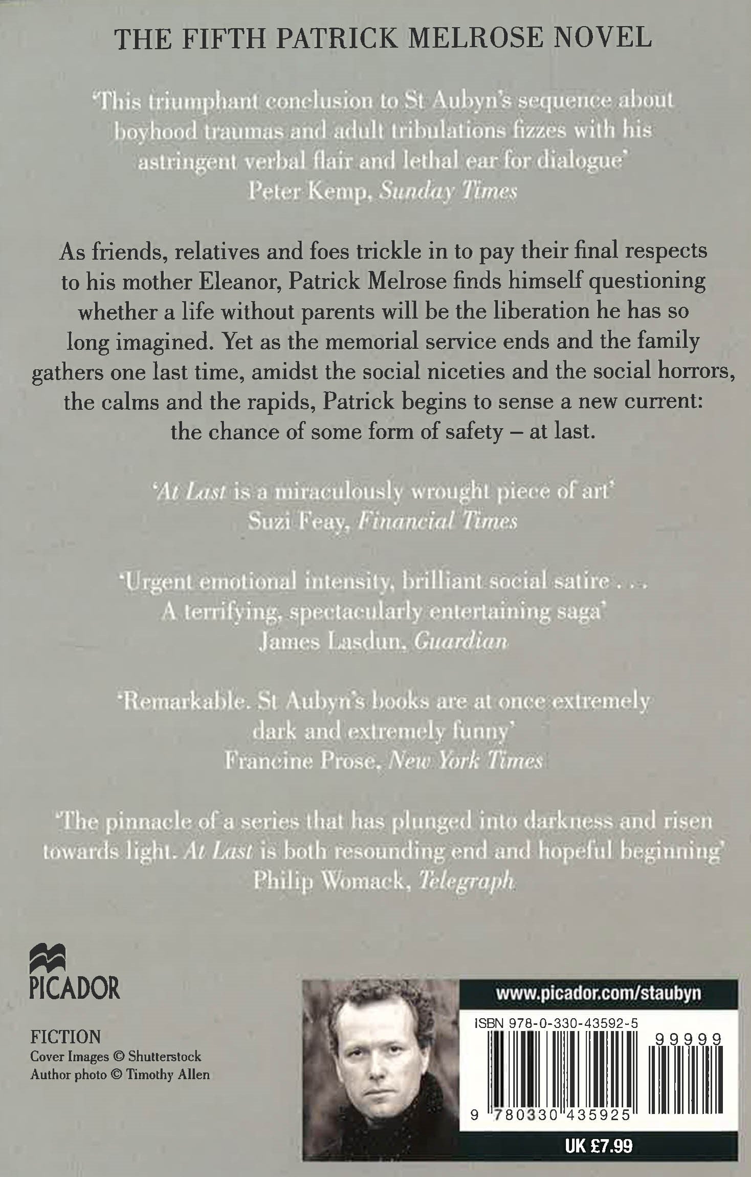 At Last is the fifth and final instalment of Edward St Aubyn's semi-autobiographical Patrick Melrose novels, adapted for TV for Sky Atlantic and starring Benedict Cumberbatch as aristocratic addict, Patrick. As friends, relatives and foes trickle in to pay their final respects to his mother Eleanor, Patrick Melrose finds himself questioning whether a life without parents will be the liberation he has so long imagined. Yet as the memorial service ends and the family gathers one last time, amidst the social niceties and the social horrors, the calms and the rapids, Patrick begins to sense a new current: the chance of some form of safety - at last.