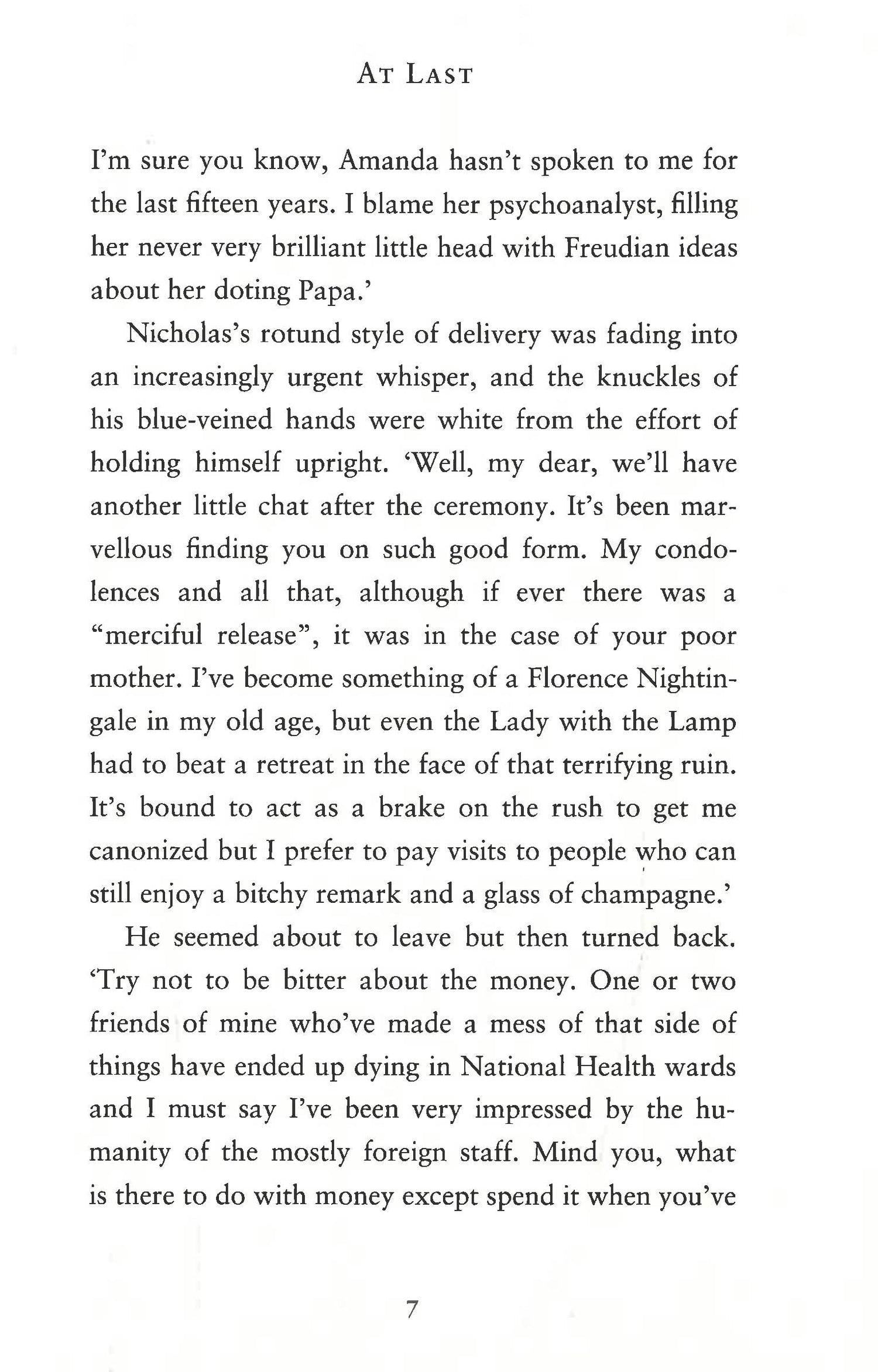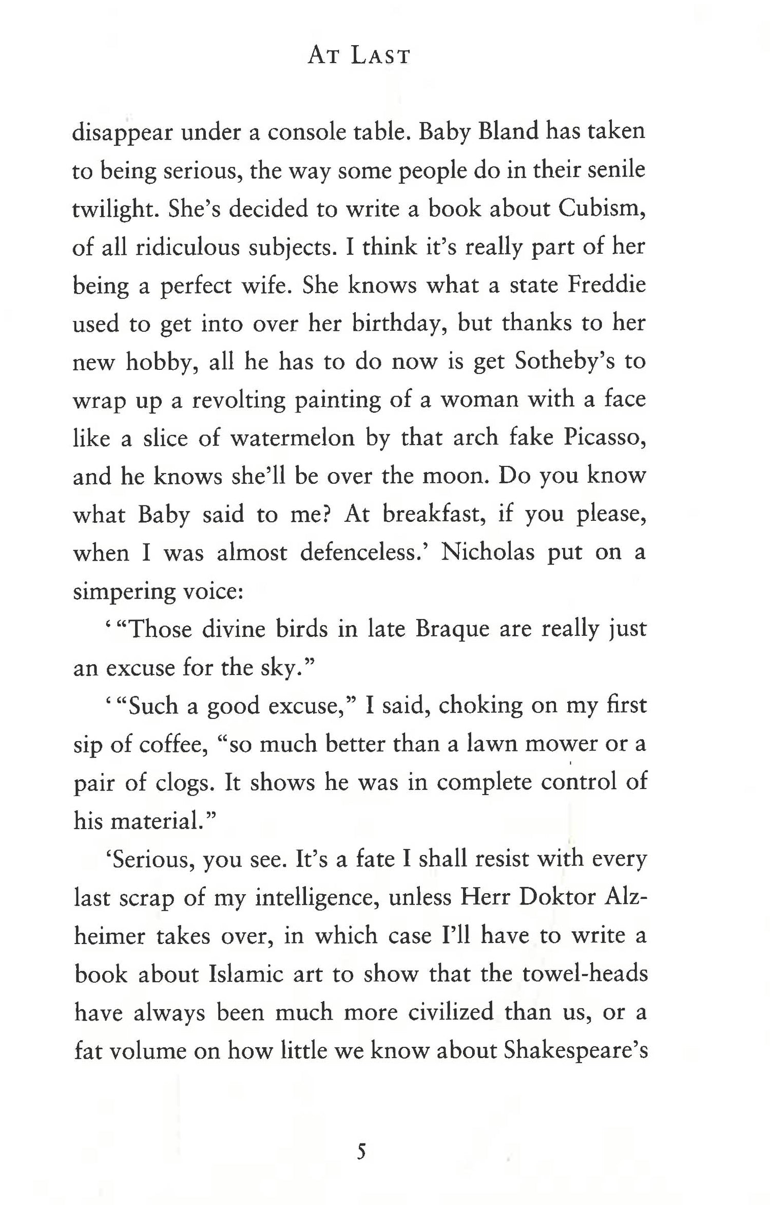 Here, from the writer described by The Guardian as "our purest living prose stylist" and whom Alan Hollinghurst has called "the most brilliant English novelist of his generation," is a work of glittering social comedy, profound emotional truth, and acute verbal wit. At Last is also the stunning culmination of one of the great fiction enterprises of the past two decades in the life of the English novel.