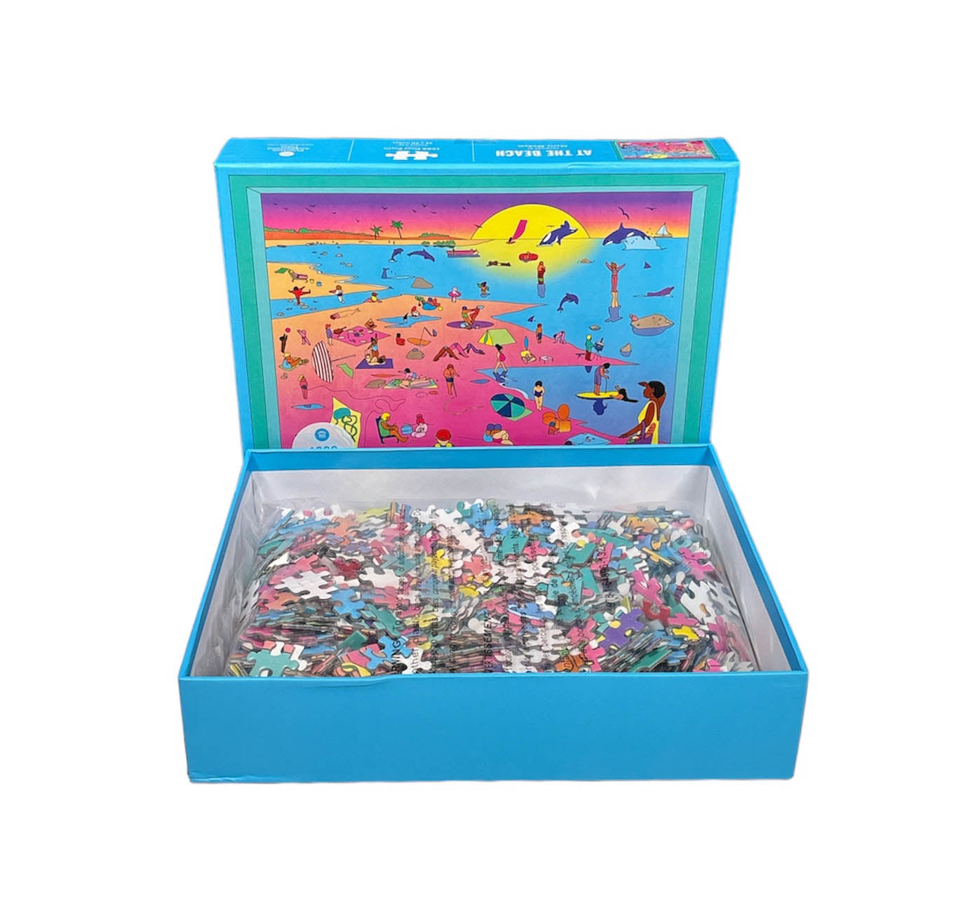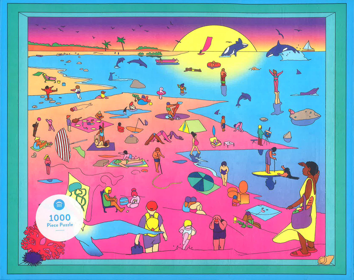 - FUN-FILLED BEACH SCENE: This bright, beautiful illustrated beach scene features retro neon colors and is teeming with sunbathers, surfers, sailors, and swimmers congregated on and around this vivid stretch of sand, each of them enjoying a different activity for you to discover as you assemble the pieces.