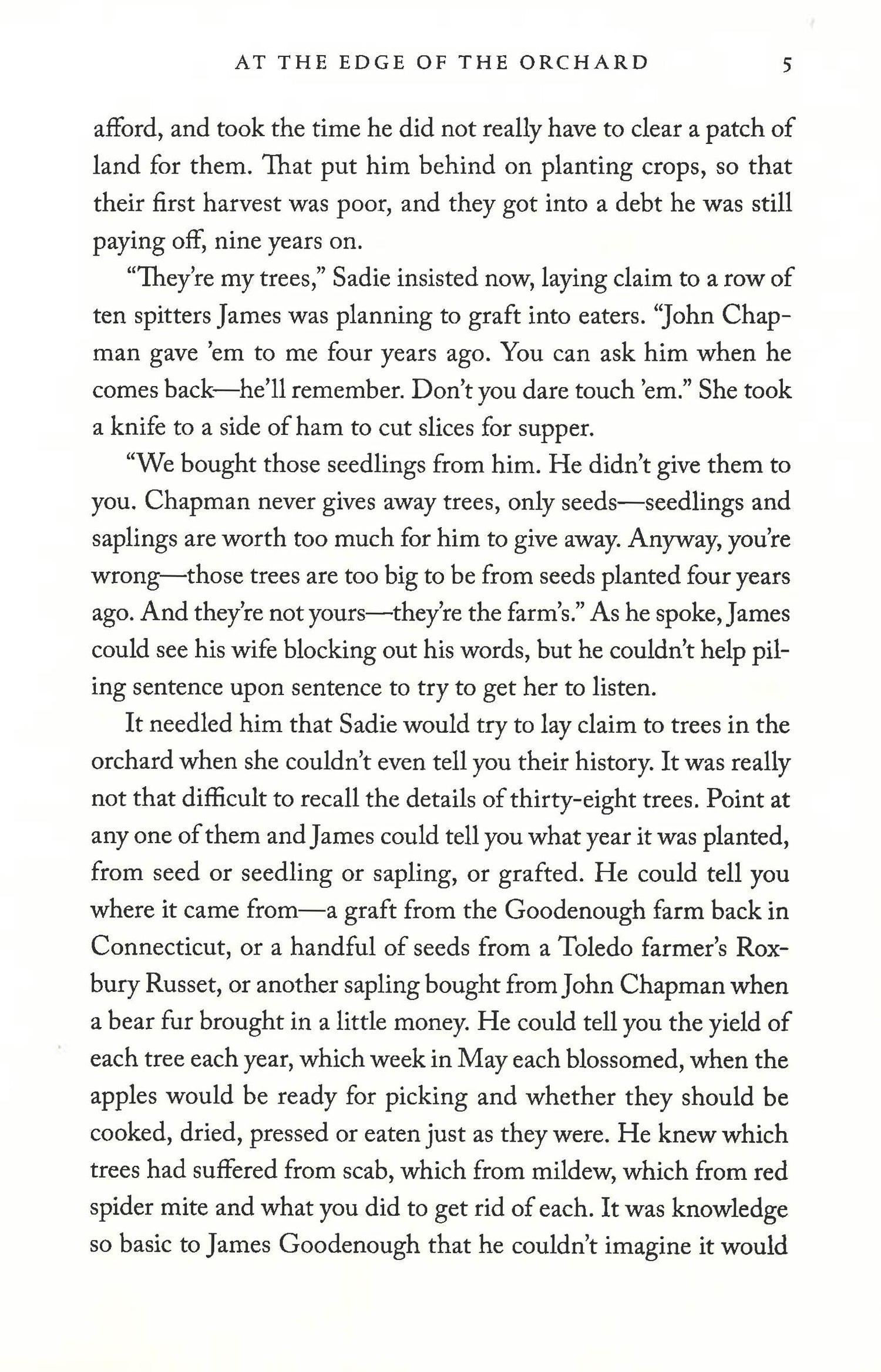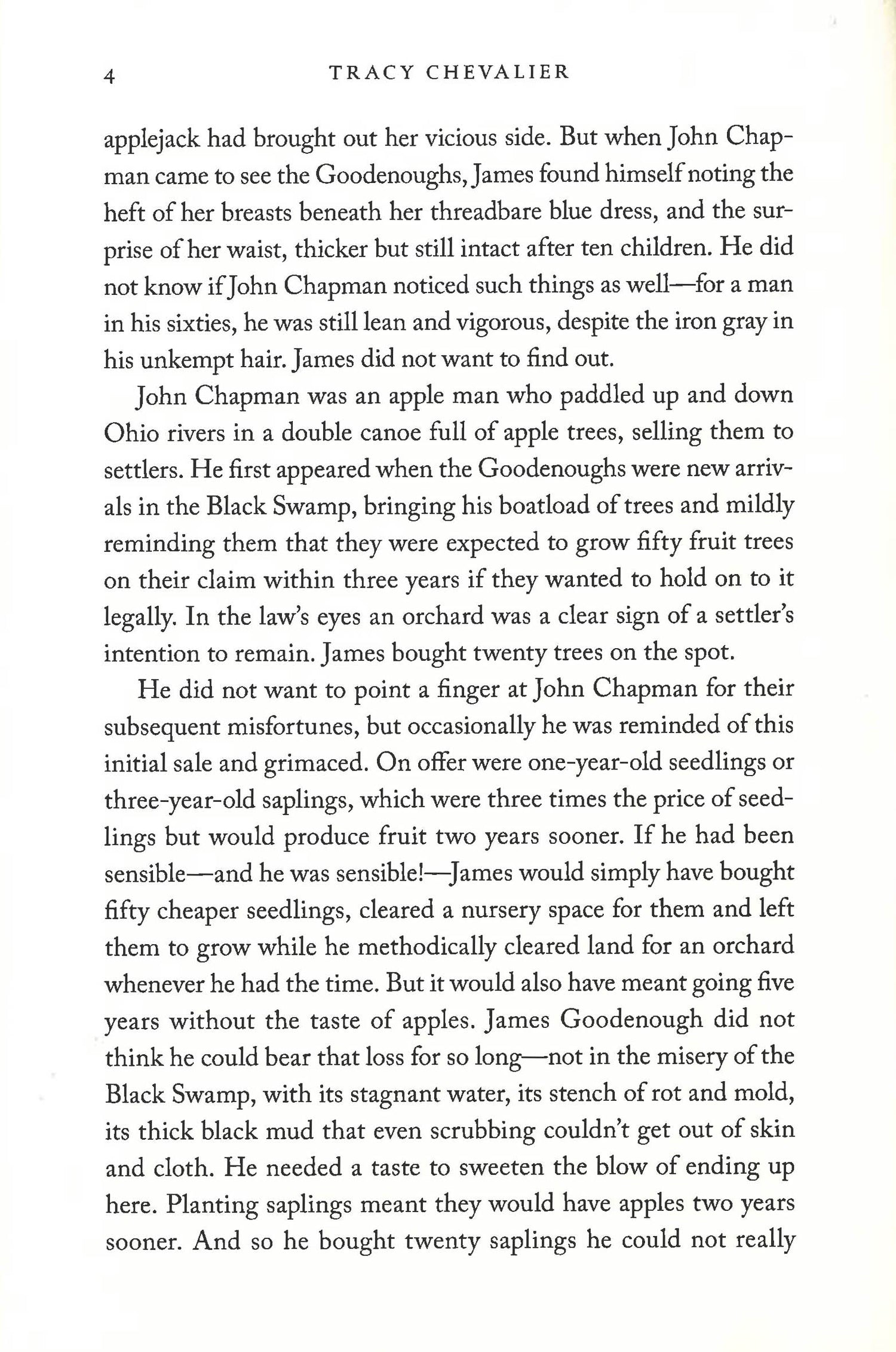 With impeccable research and flawless prose, Chevalier perfectly conjures the grandeur of the pristine Wild West . . . and the everyday adventurers--male and female--who were bold enough or foolish enough to be drawn to the unknown. She crafts for us an excellent experience. --USA Today From internationally bestselling author Tracy Chevalier, a riveting drama of a pioneer family on the American frontier 1838: James and Sadie Goodenough have settled where their wagon got stuck - in the muddy, stagnant swamps of northwest Ohio. They and their five children work relentlessly to tame their patch of land, buying saplings from a local tree man known as John Appleseed so they can cultivate the fifty apple trees required to stake their claim on the property. But the orchard they plant sows the seeds of a long battle. James loves the apples, reminders of an easier life back in Connecticut; while Sadie prefers the applejack they make, an alcoholic refuge from brutal frontier life. 1853: Their youngest child Robert is wandering through Gold Rush California. Restless and haunted by the broken family he left behind, he has made his way alone across the country. In the redwood and giant sequoia groves he finds some solace, collecting seeds for a naturalist who sells plants from the new world to the gardeners of England. But you can run only so far, even in America, and when Robert's past makes an unexpected appearance he must decide whether to strike out again or stake his own claim to a home at last. Chevalier tells a fierce, beautifully crafted story in At the Edge of the Orchard, her most graceful and richly imagined work yet. *This book may have a remainder mark