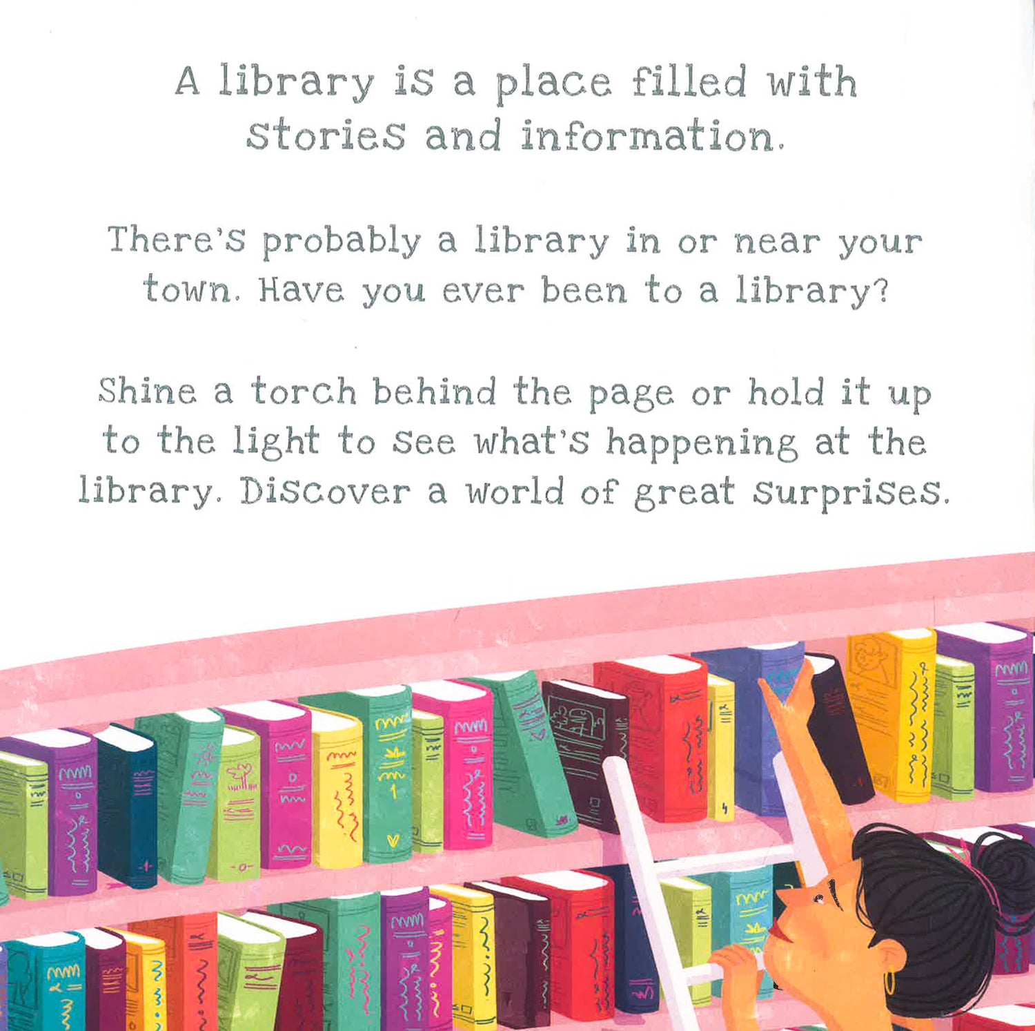 What is hidden in the world around us? For ages 3 and up, the uniquely designed Shine-A-Light series of books uncovers the facts behind a diverse range of places and topics through hidden images that are revealed by light. First, view a full-colour scene and read about what is pictured-but what else is there? Shine a flashlight behind the page, or hold it up to the light, to reveal what is hidden. Turn the page to read fun facts about the hidden image in black and white. A world of surprises awaits! What's it like inside a library? Who is welcome, how do you use one, and what is there to do? This beautifully illustrated book introduces children to libraries, big and small, and all of the amazing things these institutions have to offer. From books to computers, from story time to special guests and from unique collections to very important rules, this wonderfully inclusive book helps children to learn about libraries and the value of reading, sharing and community.