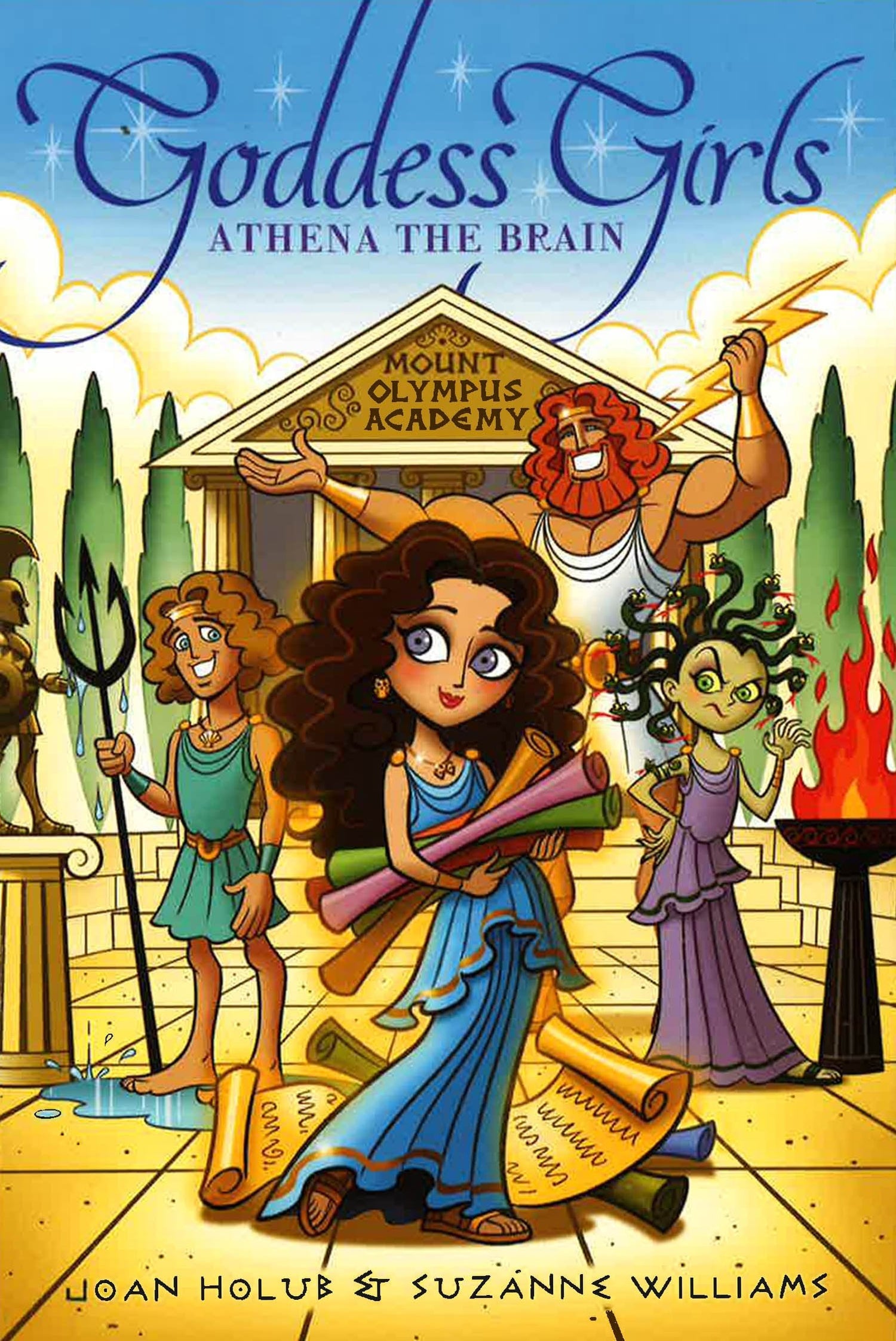 In Athena the Brain, Athena always knew she was smart and special, but she didn't realize that she was a goddess! When she's whisked away to Mount Olympus Academy, she worries about fitting in and dealing with her dad (Zeus). Luckily, she meets the Goddess Girls and finds the best friends she's ever had.