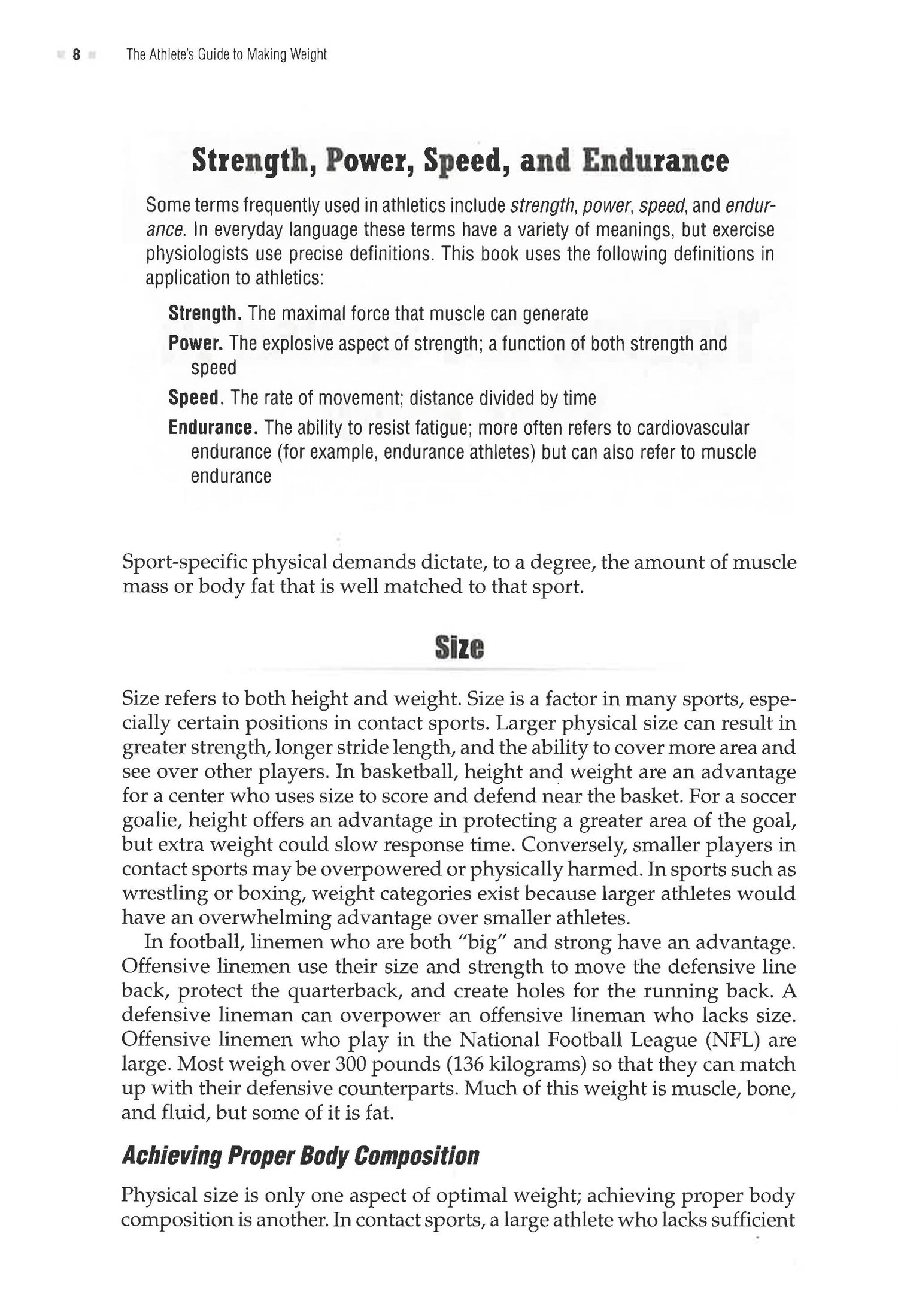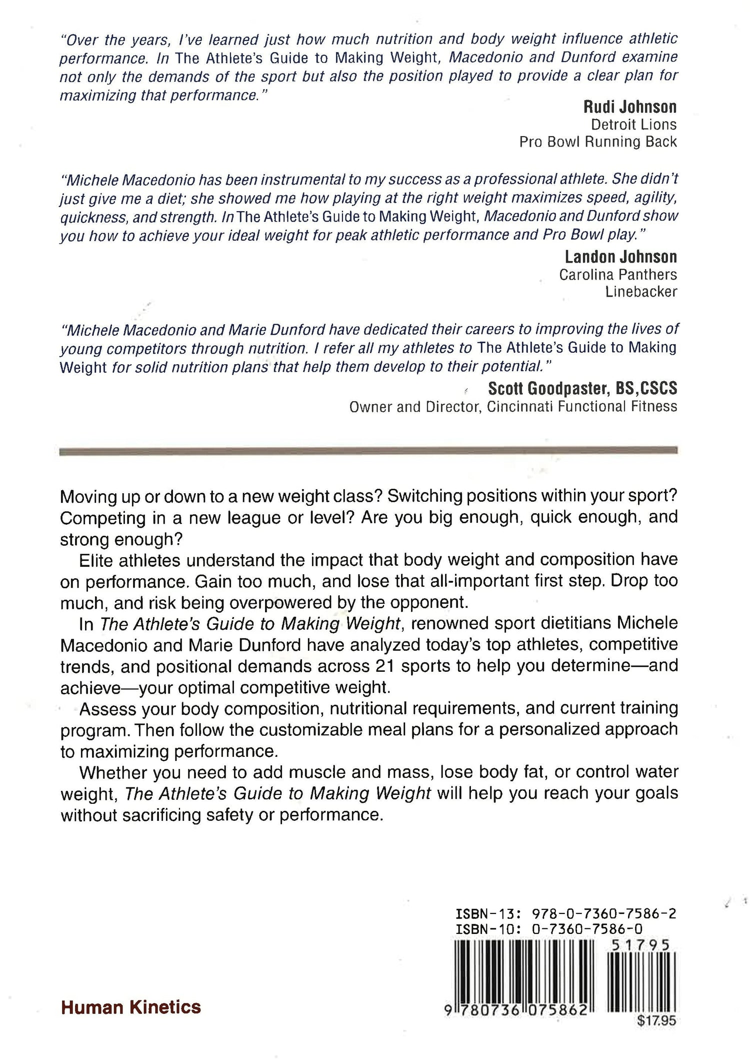 Whether you need to add muscle and mass, lose body fat, or control water weight, The Athlete's Guide to Making Weight will help you reach your goals without sacrificing safety or performance
