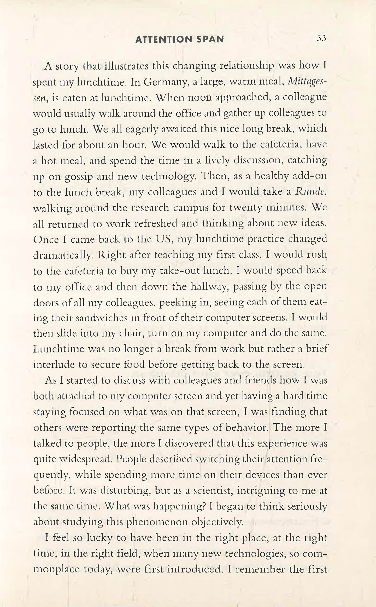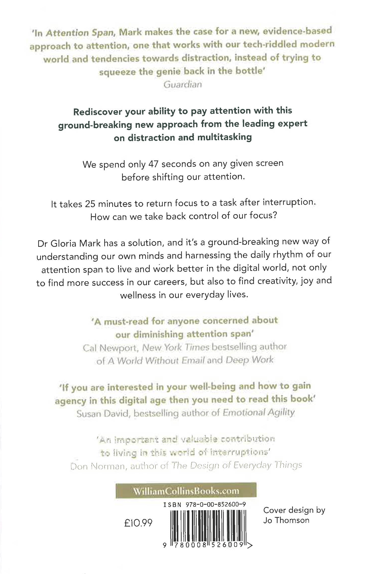 In Attention Span, psychologist Gloria Mark reveals these and more surprising results from her decades of research into how technology affects our attention. She shows how much of what we think we know is wrong, including insights such as: