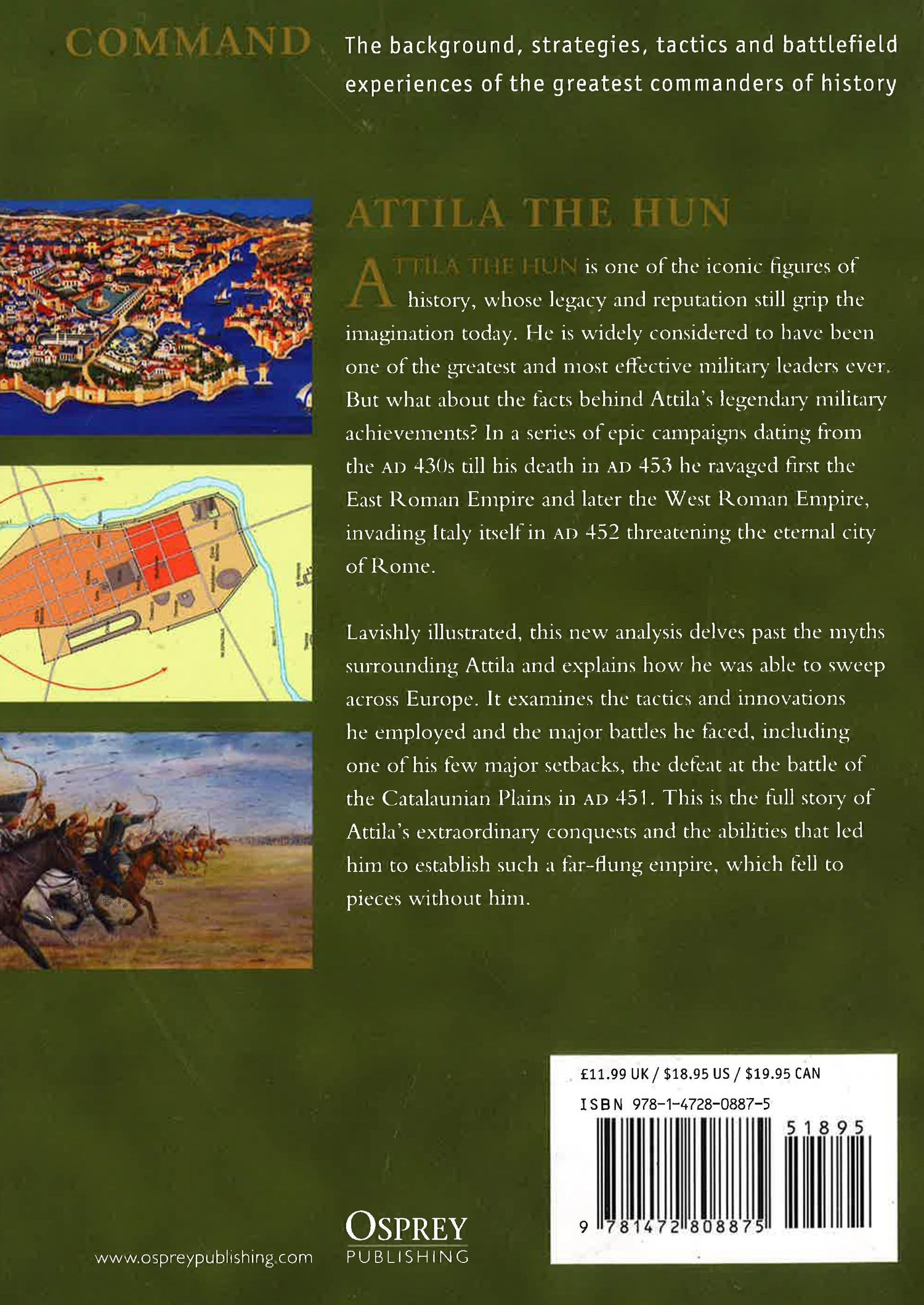 One of the most powerful men in late antiquity, Attila's peerless Hunnic empire stretched from the Ural mountains to the Rhine river. In a series of epic campaigns dating from the AD 430s until his death in AD 453, he ravaged first the Eastern and later the Western Roman Empire, invading Italy in AD 452 and threatening Rome itself. Lavishly illustrated, this new analysis of his military achievements examines how Attila was able to sweep across Europe, the tactics and innovations he employed and the major battles he faced, including one of his few major setbacks, the defeat at the battle of the Catalaunian Fields in AD 451.