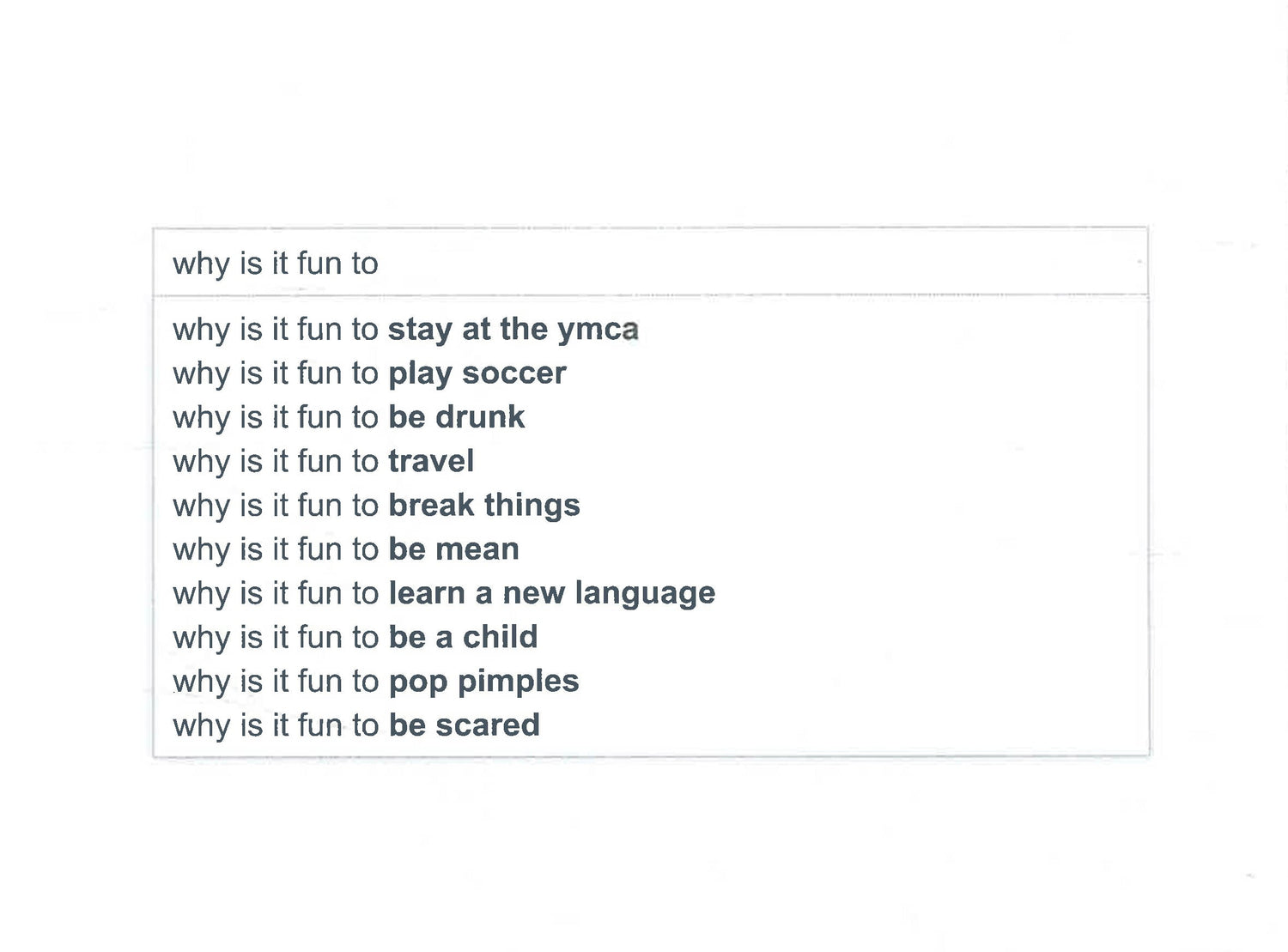 Autocomplete shows us that we're all more alike than we think, even in our deepest, darkest internet history.