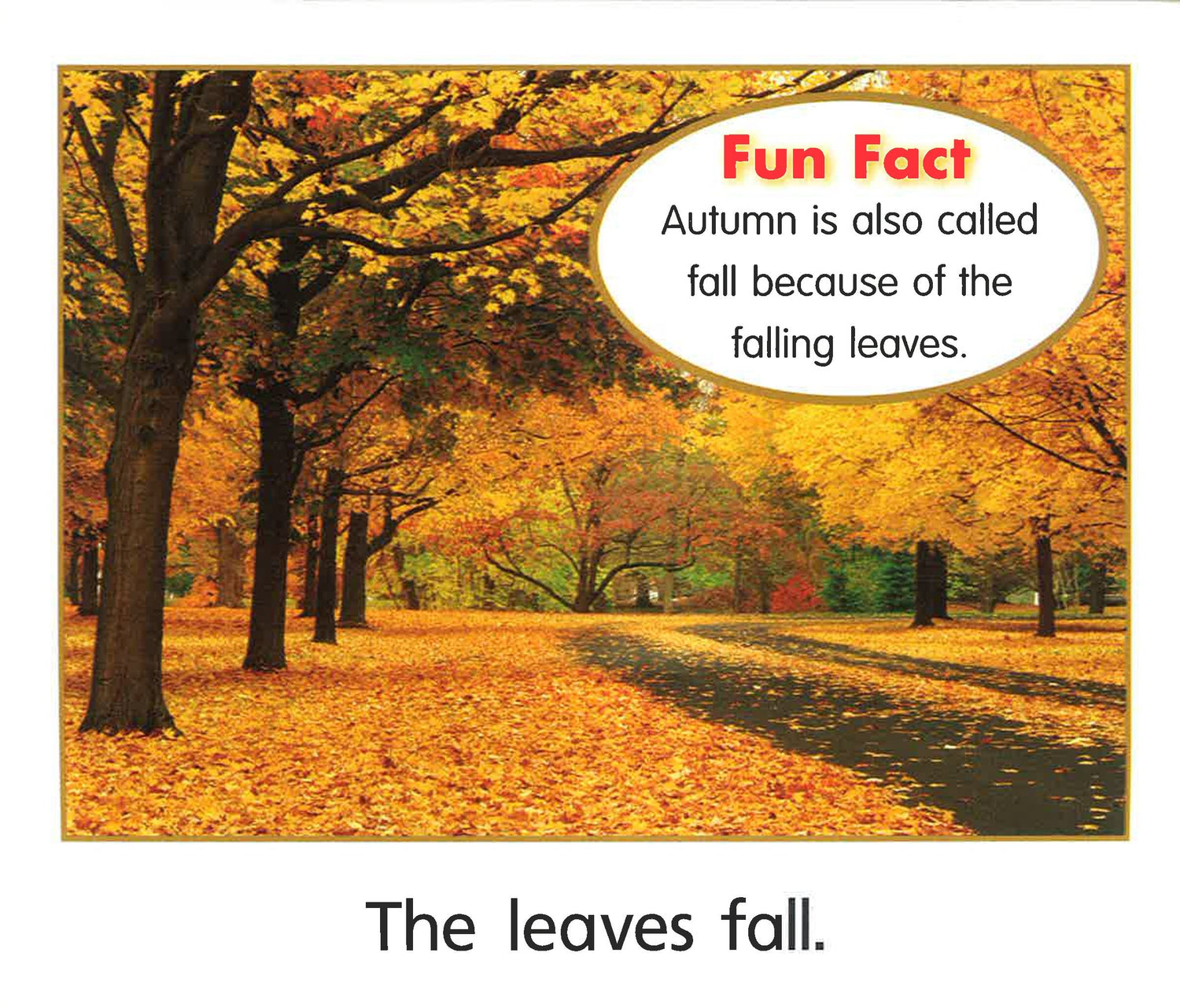 In autumn, leaves grow red and fall from the trees. The days grow shorter and the weather gets colder. Fruits ripen. Squirrels look for nuts and seeds. The world gets ready for winter. Learn what to look for in autumn as you read this easy fact book. Short sentences and simple words help you along, while amazing colour photos show you all the magic of autumn.
