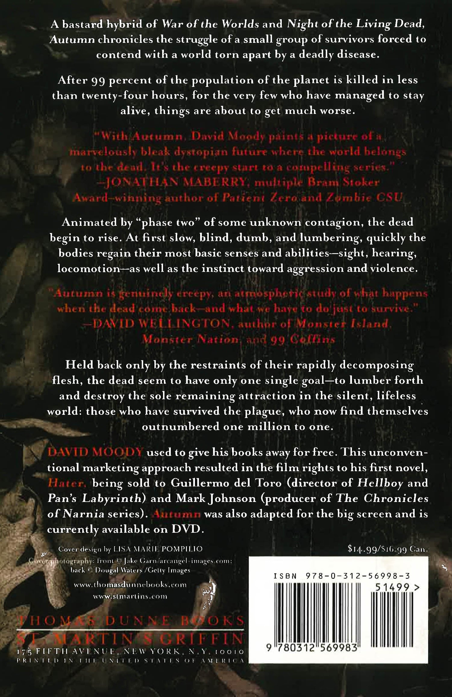 A bastard hybrid of War of the Worlds and Night of the Living Dead, Autumn chronicles the struggle of a small group of survivors forced to contend with a world torn apart by a deadly disease. After 99% of the population of the planet is killed in less than 24 hours, for the very few who have managed to stay alive, things are about to get much worse. Animated by "phase two" of some unknown contagion, the dead begin to rise. At first slow, blind, dumb and lumbering, quickly the bodies regain their most basic senses and abilities . . . sight, hearing, locomotion . . . As well as the instinct toward aggression and violence. Held back only by the restraints of their rapidly decomposing flesh, the dead seem to have only one single goal - to lumber forth and destroy the sole remaining attraction in the silent, lifeless world: those who have survived the plague, who now find themselves outnumbered 1,000,000 to 1 . . . Without ever using the 'Z' word, Autumn offers a new perspective on the traditional zombie story. There's no flesh eating, no fast-moving corpses, no gore for gore's sake. Combining the atmosphere and tone of George Romero's classic living dead films with the attitude and awareness of 28 Days (and Weeks) later, this horrifying and suspenseful novel is filled with relentless cold, dark fear.