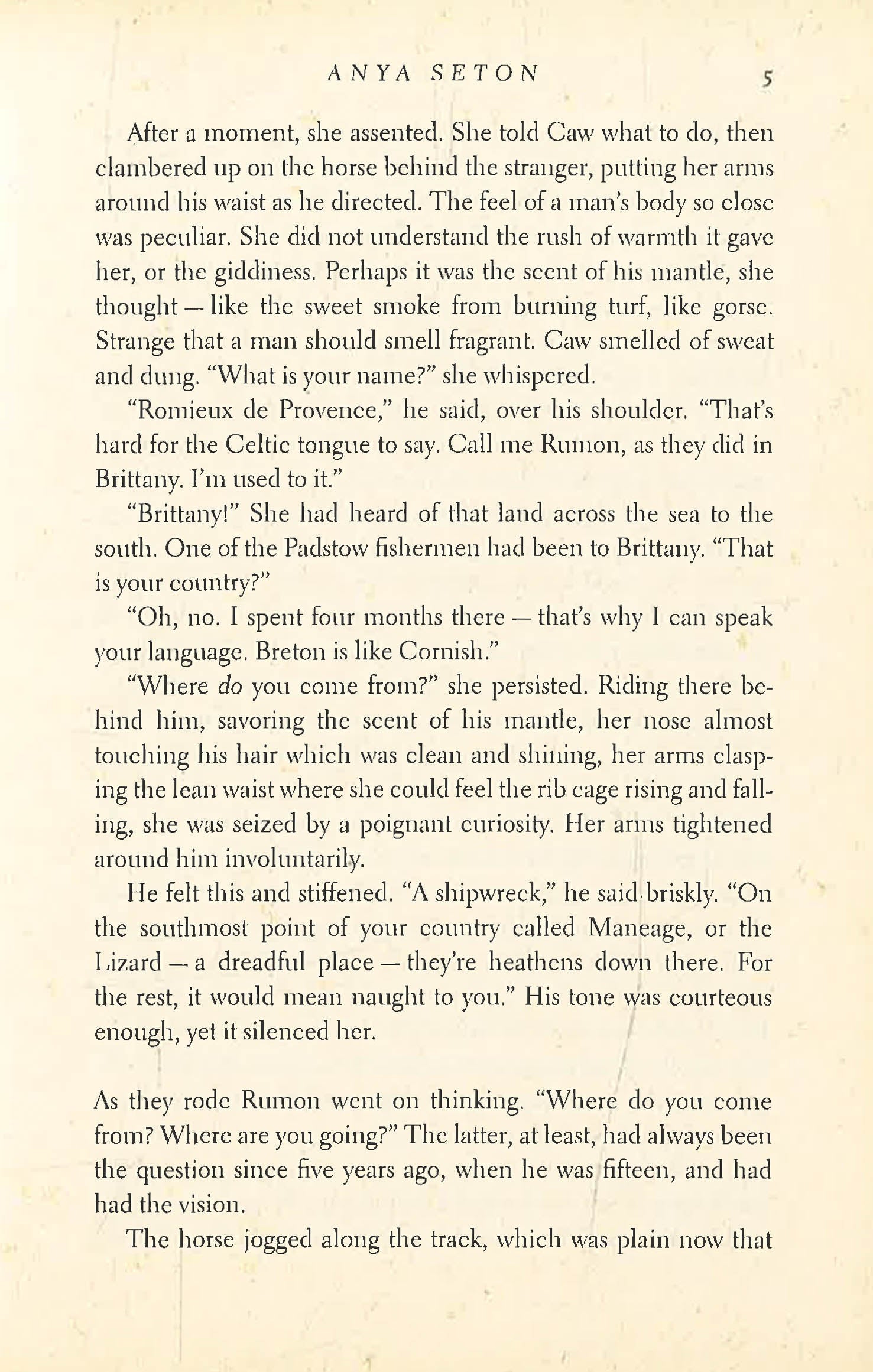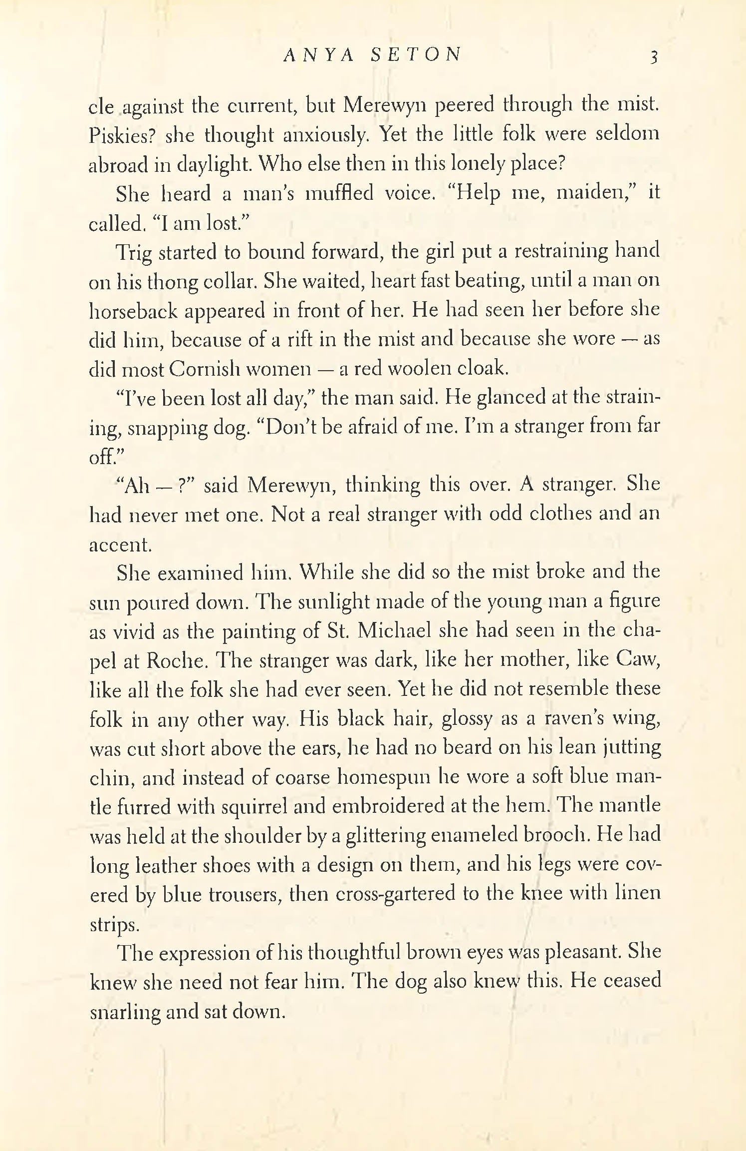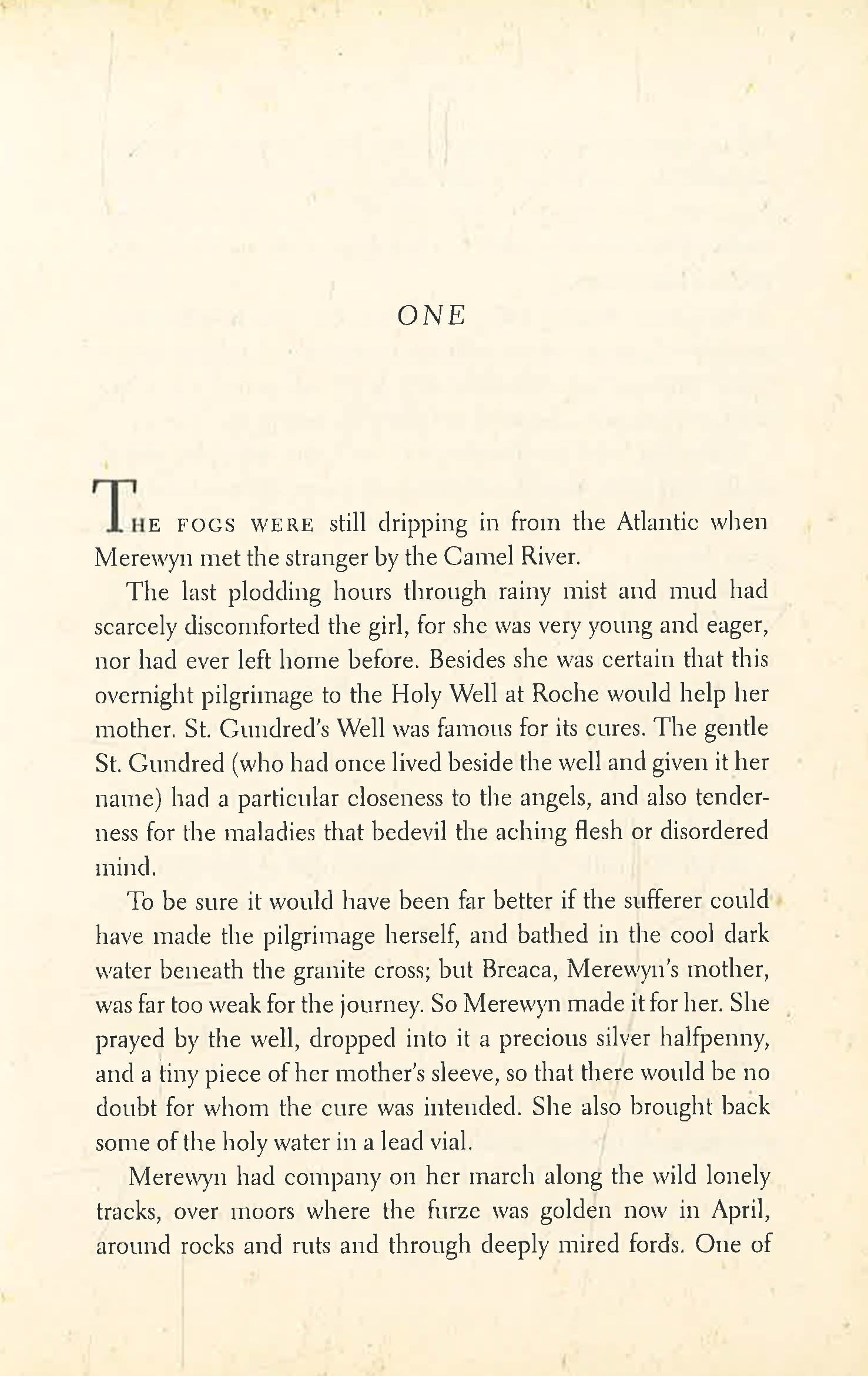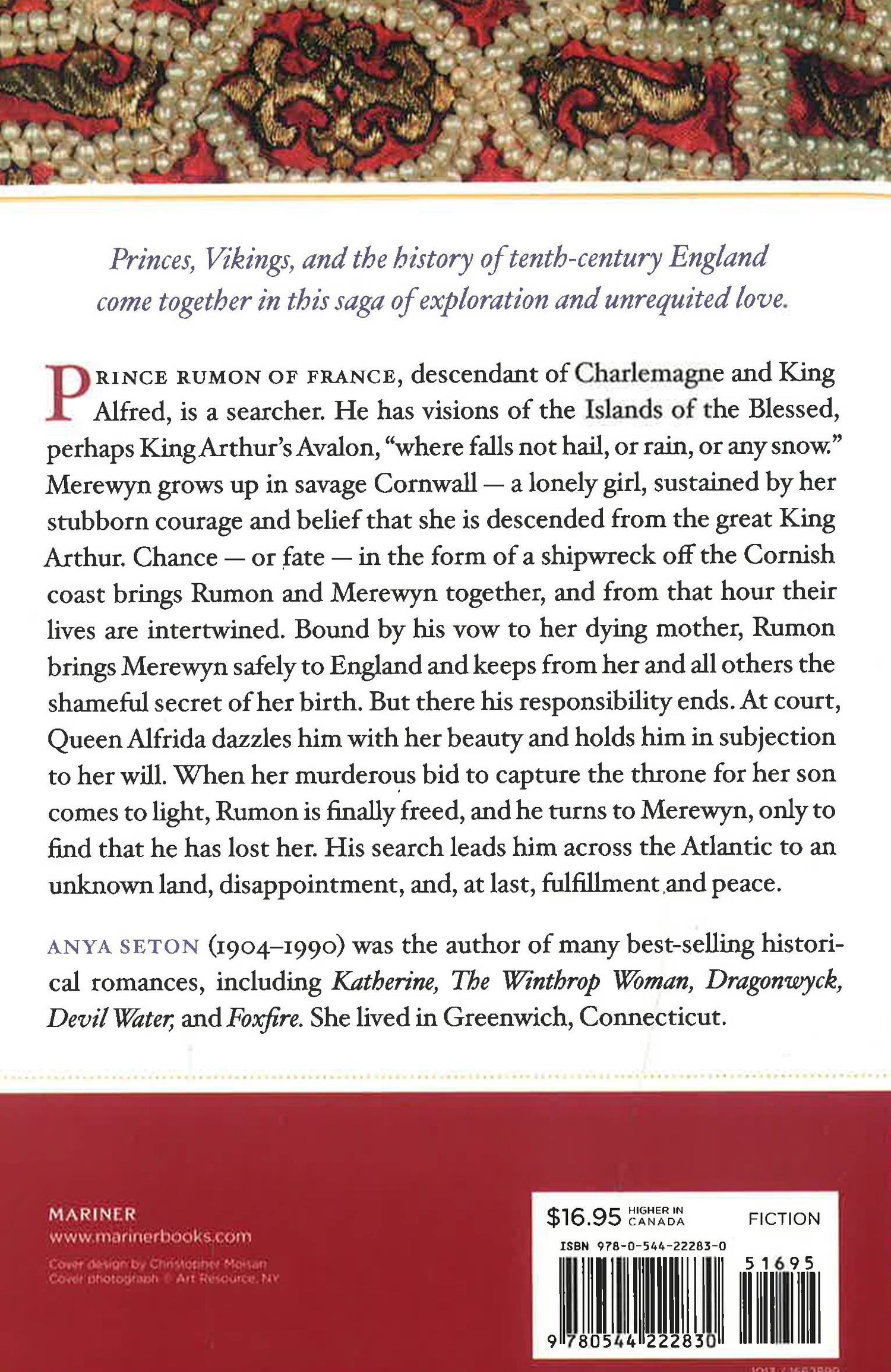 Prince Rumon of France, descendant of Charlemagne and King Alfred, is a searcher. He has visions of the Islands of the Blessed, perhaps King Arthur's Avalon, "where falls not hail, or rain, or any snow." Merewyn grows up in savage Cornwall--a lonely girl, sustained by her stubborn courage and belief that she is descended from the great King Arthur. Chance--or fate--in the form of a shipwreck off the Cornish coast brings Rumon and Merewyn together, and from that hour their lives are intertwined. Bound by his vow to her dying mother, Rumon brings Merewyn safely to England and keeps from her and all others the shameful secret of her birth. But there his responsibility ends. At court, Queen Alfrida dazzles him with her beauty and holds him in subjection to her will. When her murderous bid to capture the throne for her son comes to light, Rumon is finally freed, and he turns to Merewyn, only to find that he has lost her. His search leads him across the Atlantic to an unknown land, disappointment, and, at last, fulfillment and peace.