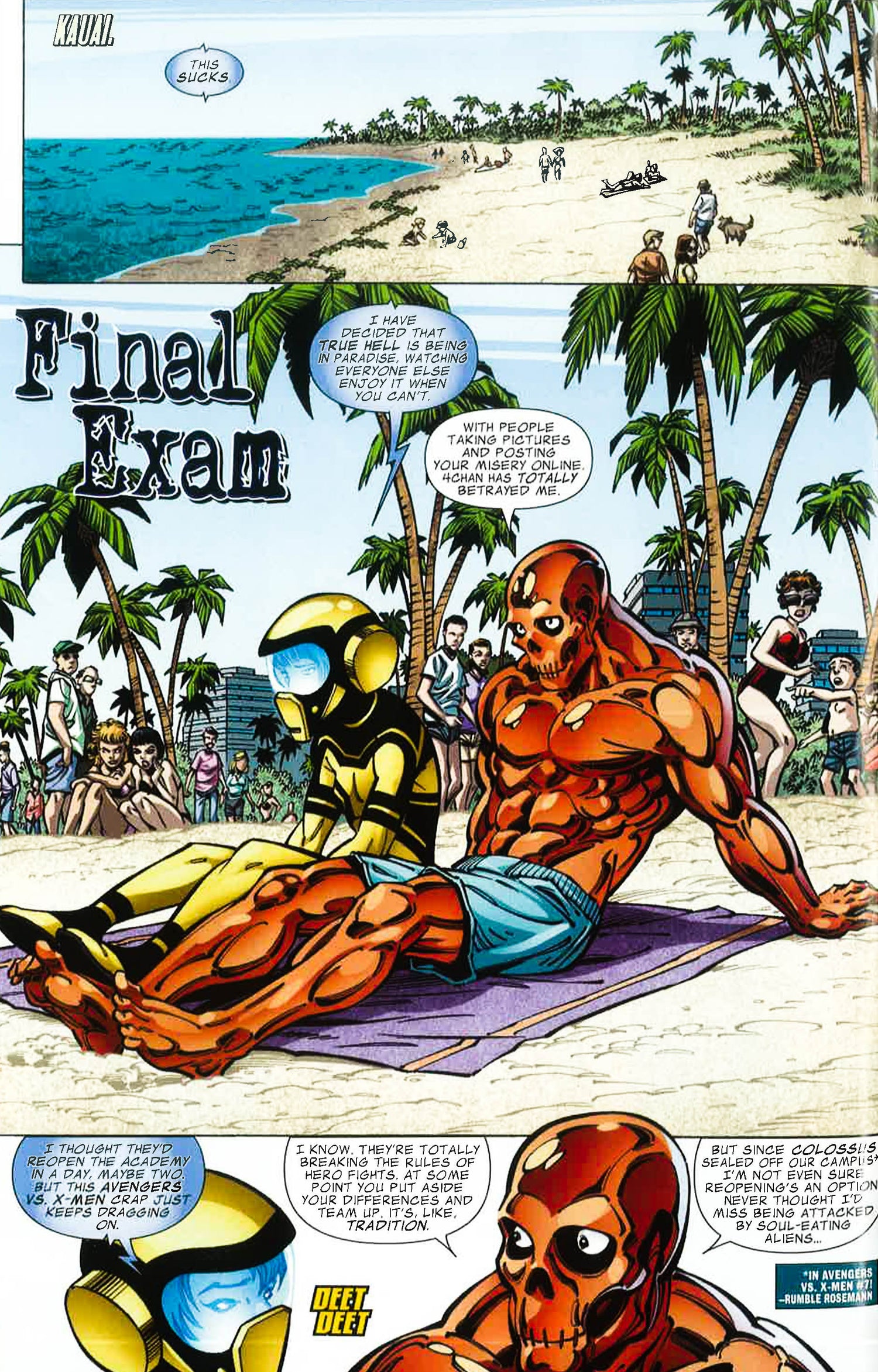 With the Academy shut down as the staff joins the fight between the Avengers and X-Men, the students are left to pave their own road and face the ultimate temptation. When the team learns of teenaged corporate magnate Jeremy Briggs' plan to cleanse the world of super heroes with a depowering inoculation, will they join his cause and take his "cure"? Faced with the opportunity to live as ordinary teenagers, it's every student for themself as they make the biggest decision of their lives!