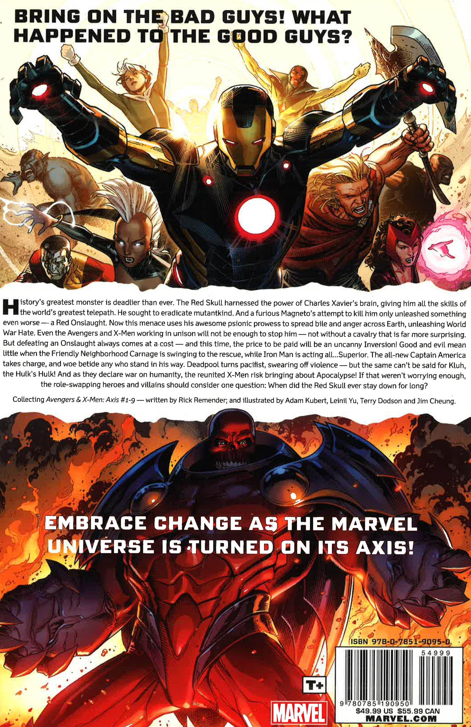 The Red Skull has exploited the gifts of the world's greatest telepath to broadcast pure hatred across the globe. Now, born of the murder of Charles Xavier, World War Hate has begun. Tony Stark discovers a secret truth that will upend not only his life, but also the lives of everyone he cares for. Can The Avengers and X-Men finally unite? Would their combined strength be enough to hold back the darkness of the Red Onslaught? Magneto murdered the wrong man, releasing the greatest evil the Marvel Universe has ever known. Now Rogue and Scarlet Witch are all that stand in its way.