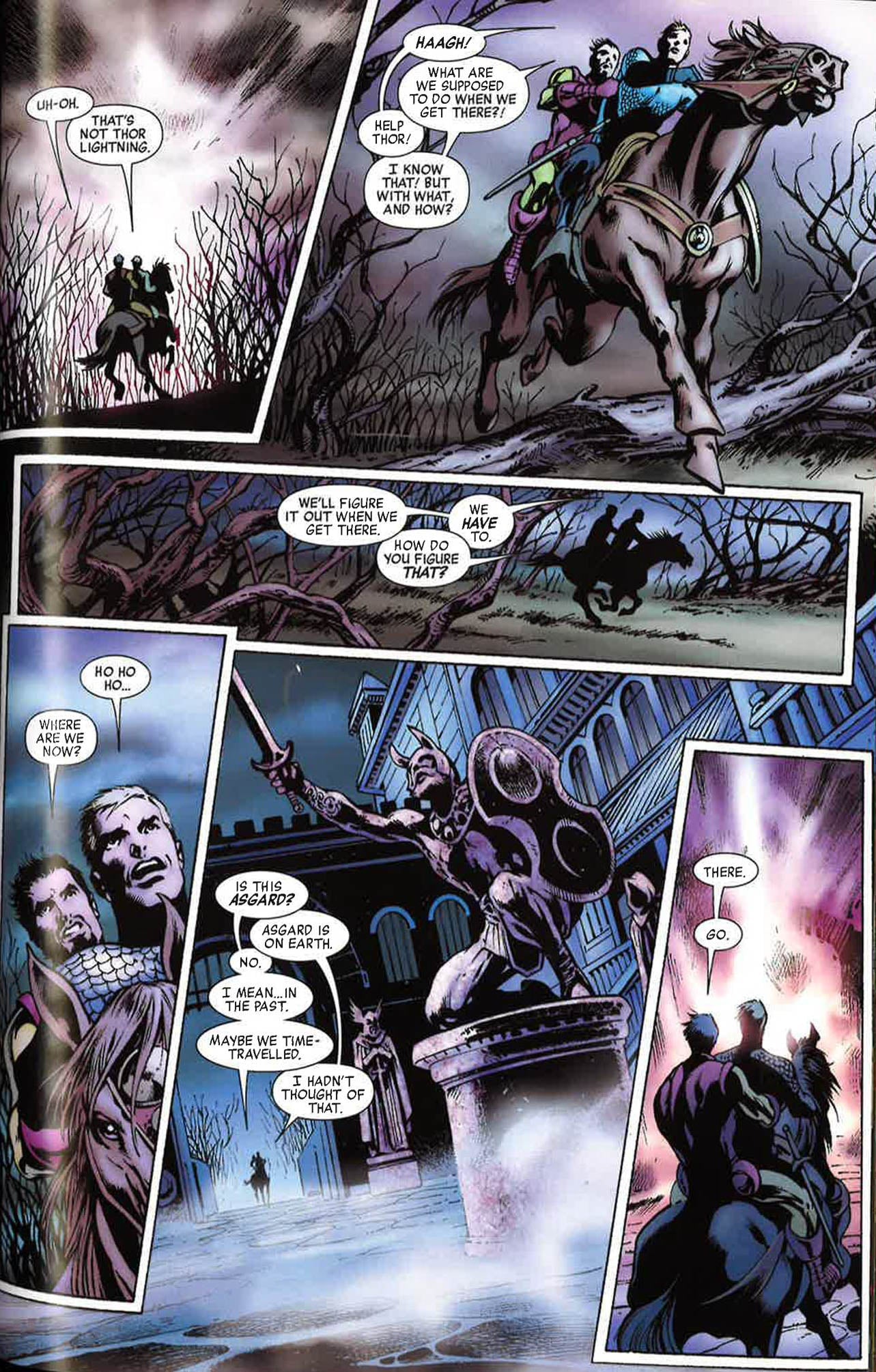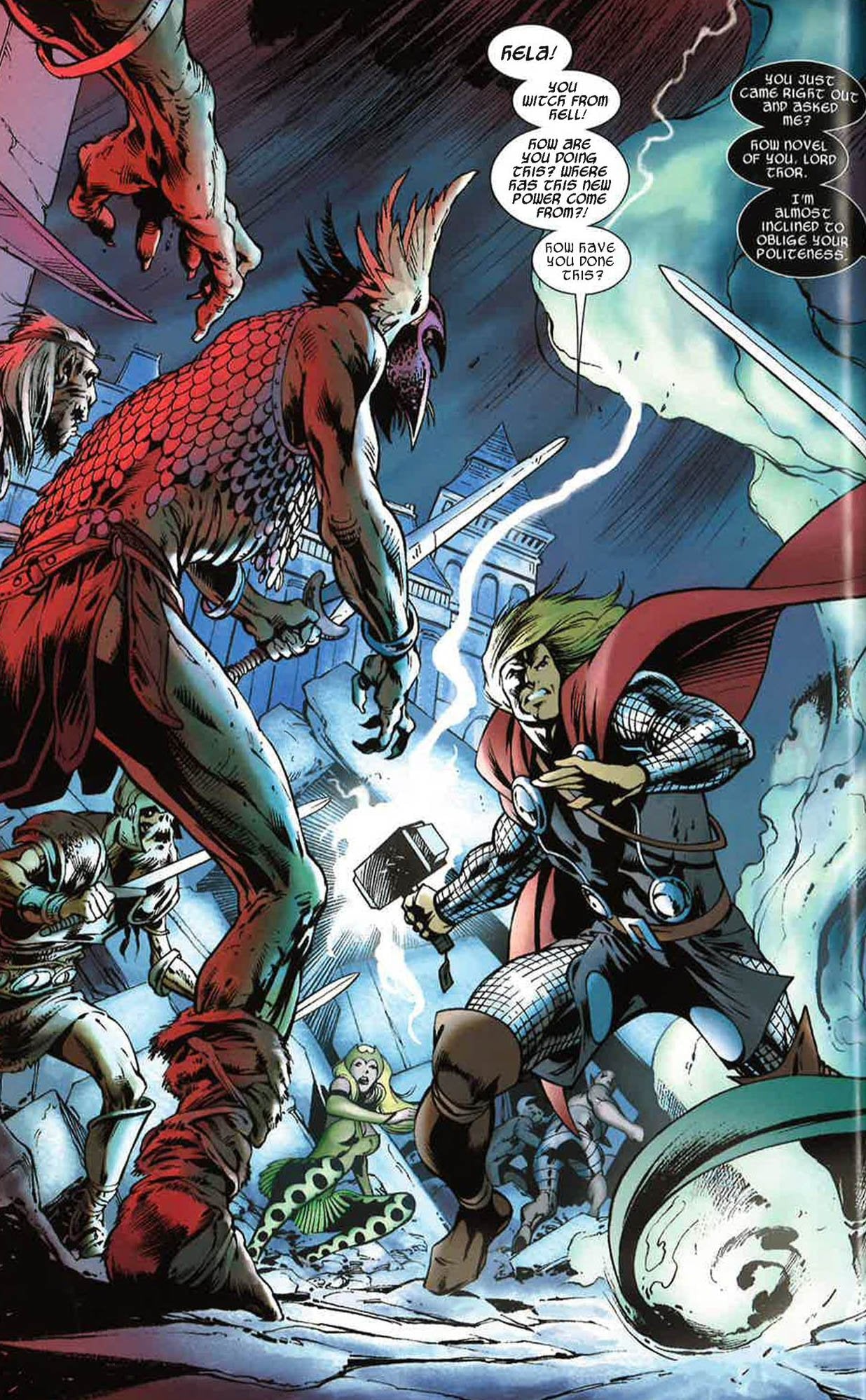 Power-mad Norman Osborn thought he was a match for the might of Earthbound Asgard. He was half-right: The reassembled Avengers drove him back, but the Realm Eternal lies in ruins. In the wreckage, former Captain America Steve Rogers, Iron Man and Thor find themselves squabbling over old wounds. As they quarrel, unstable magics cast the heroes-at-odds into the scattered Nine Realms. Separated, and with no clear path home, they quickly realize the world in which they're trapped is not how it should be. Have their actions somehow caused a rift in the natural order? Can they come together and put it right? Their bittersweet reunion may be short-lived, with Hela - Norse Goddess of Death - waiting in the wings!