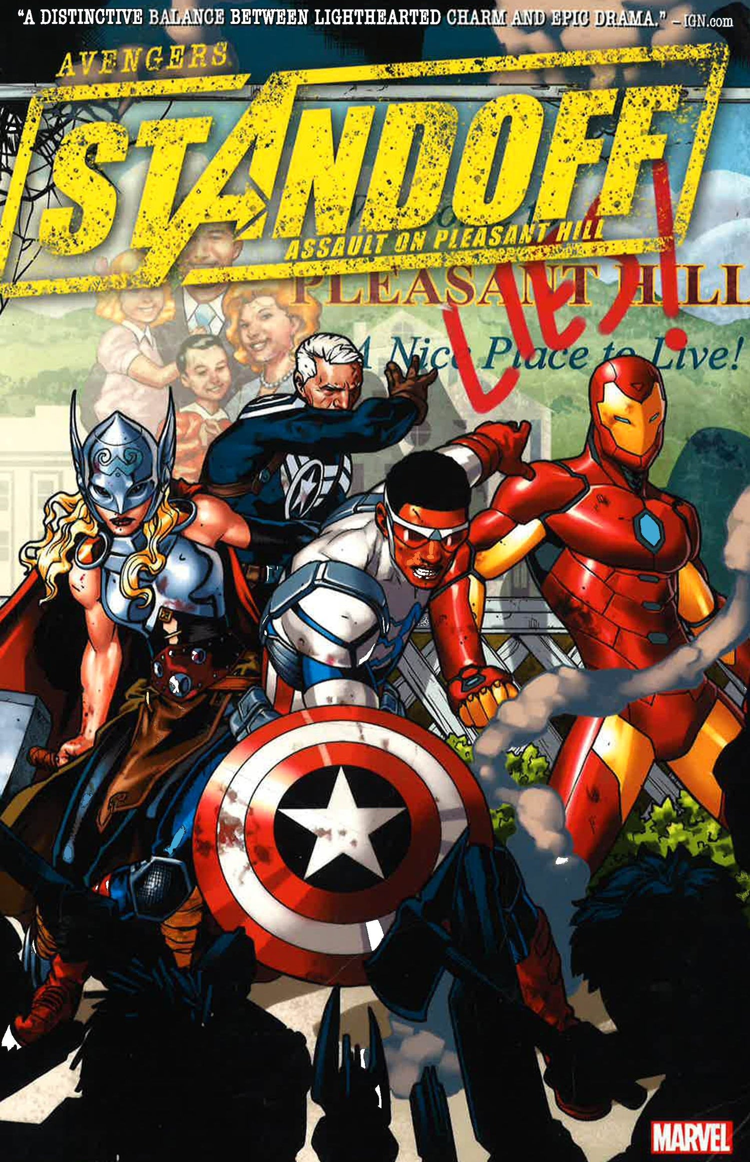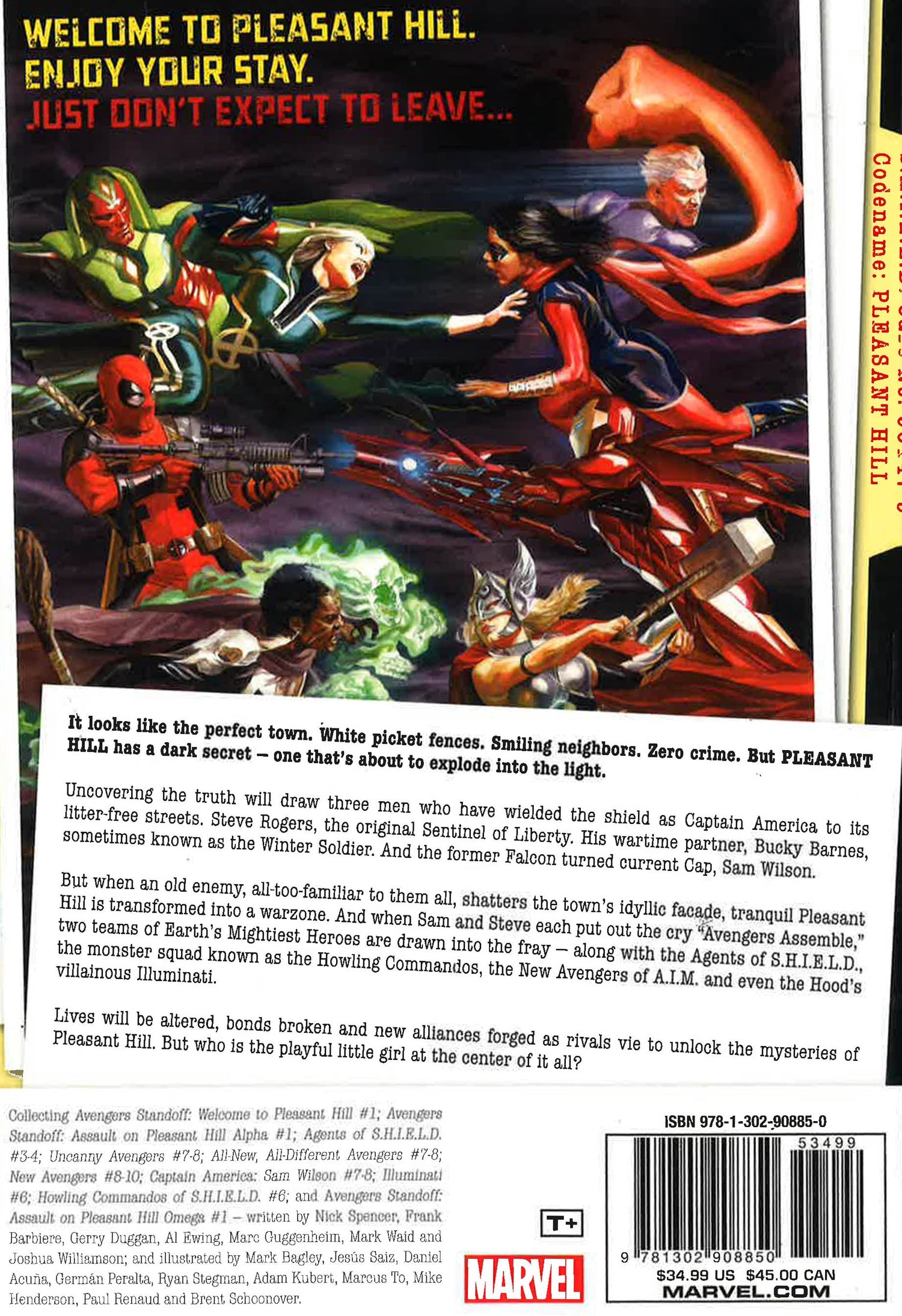 On his 75th anniversary, Captain America is about to face a challenge unlike any other. Prepare for an assault on...Pleasant Hill! Three shield-wielders past and present - Steve Rogers, Bucky Barnes and Sam Wilson - find themselves in a standoff, with high and very personal stakes. And this tense conflict quickly escalates out of control, drawing in several Avengers teams! But it all begins in the small town of Pleasant Hill, an idyllic community with friendly neighbors...and a terrible, dark secret. What is going on behind Pleasant Hill's closed doors, and how will Captain America react?