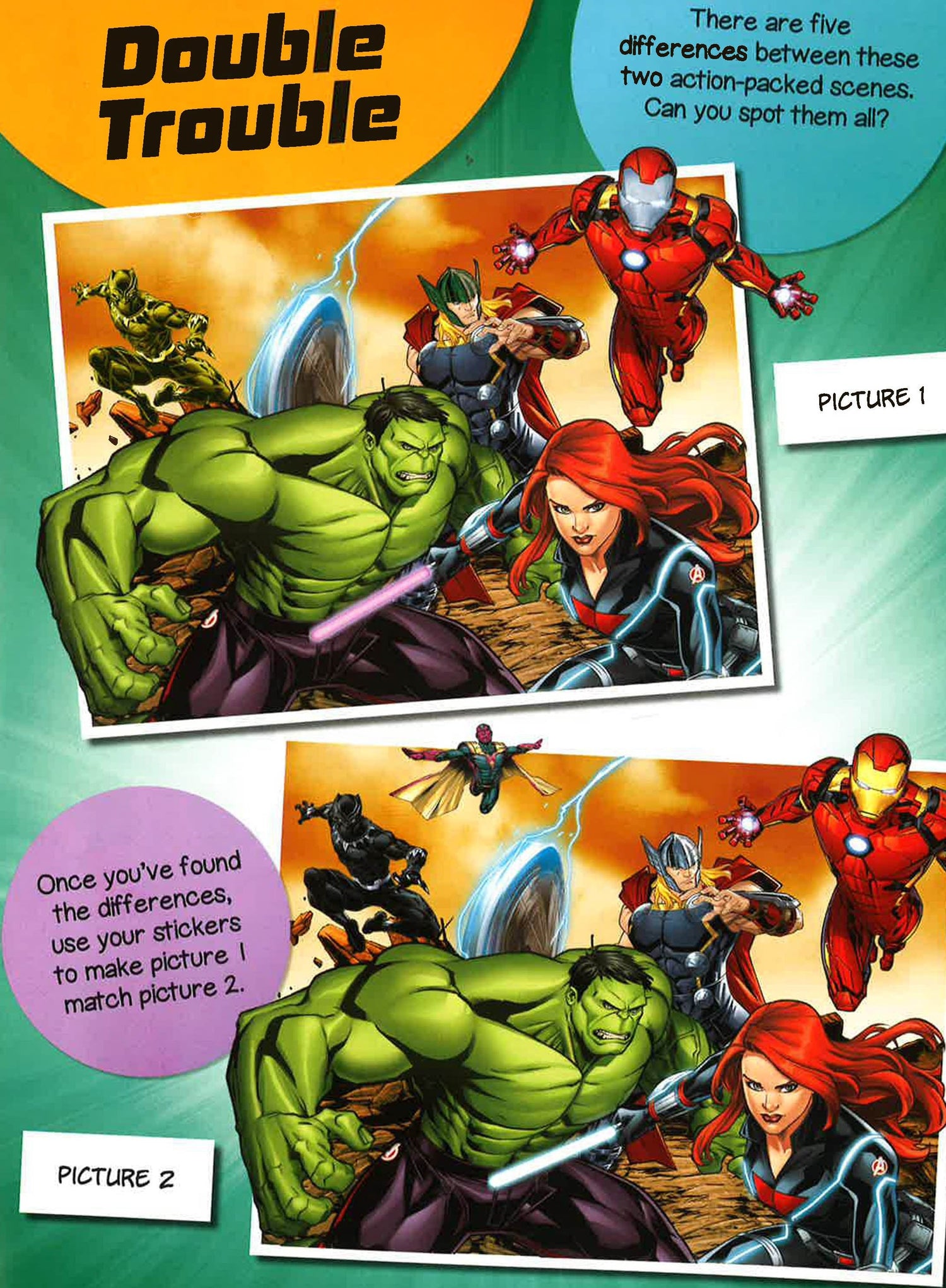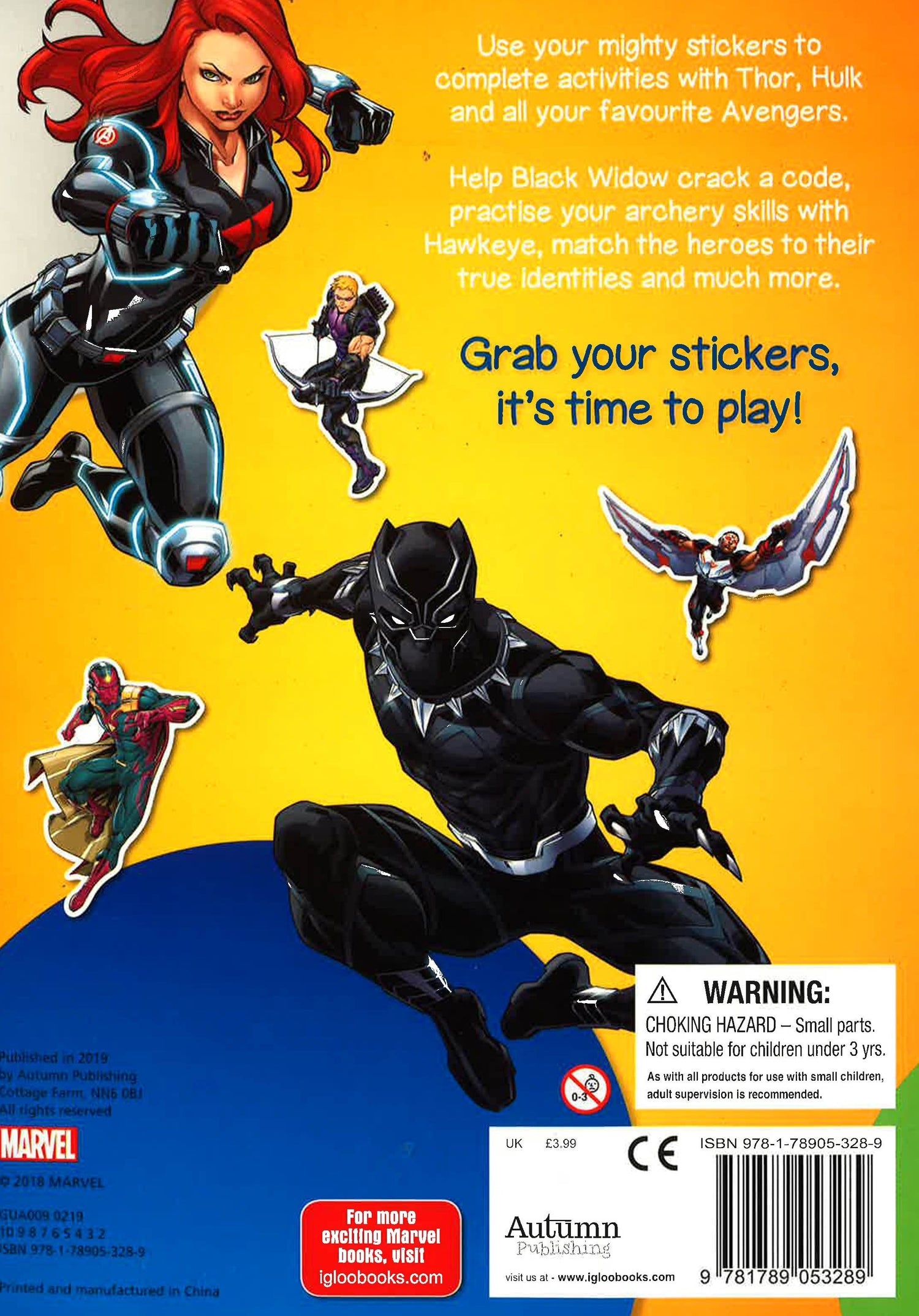 Use your mighty stickers to complete activities with Thor, Hulk and all your favourite Avengers. Help Black Widow crack a code, practise your archery skills with Hawkeye, match the heroes to their true identities and much more. Grab your stickers, it's time to play!