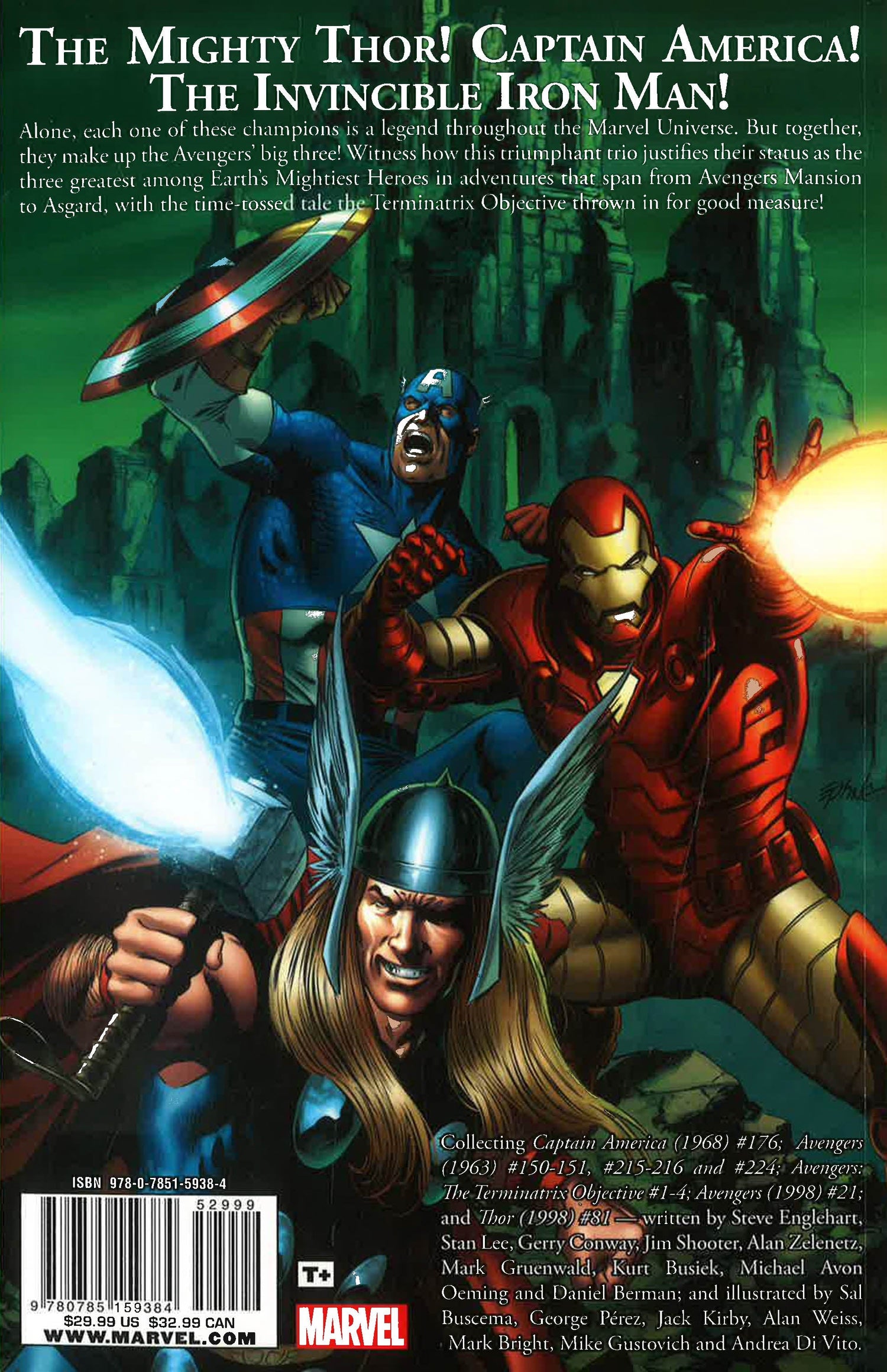 The Mighty Thor! Captain America! The Invincible Iron Man! Alone, each one of these champions is a legend throughout the Marvel Universe. but together, they make up the Avengers' Big Three! Witness how this triumphant trio justifies their status as the three greatest World's Mightiest Heroes in adventures that span from Avengers Mansion to Asgard, with the time-tossed tale the Terminatrix Objective thrown in for good measure!