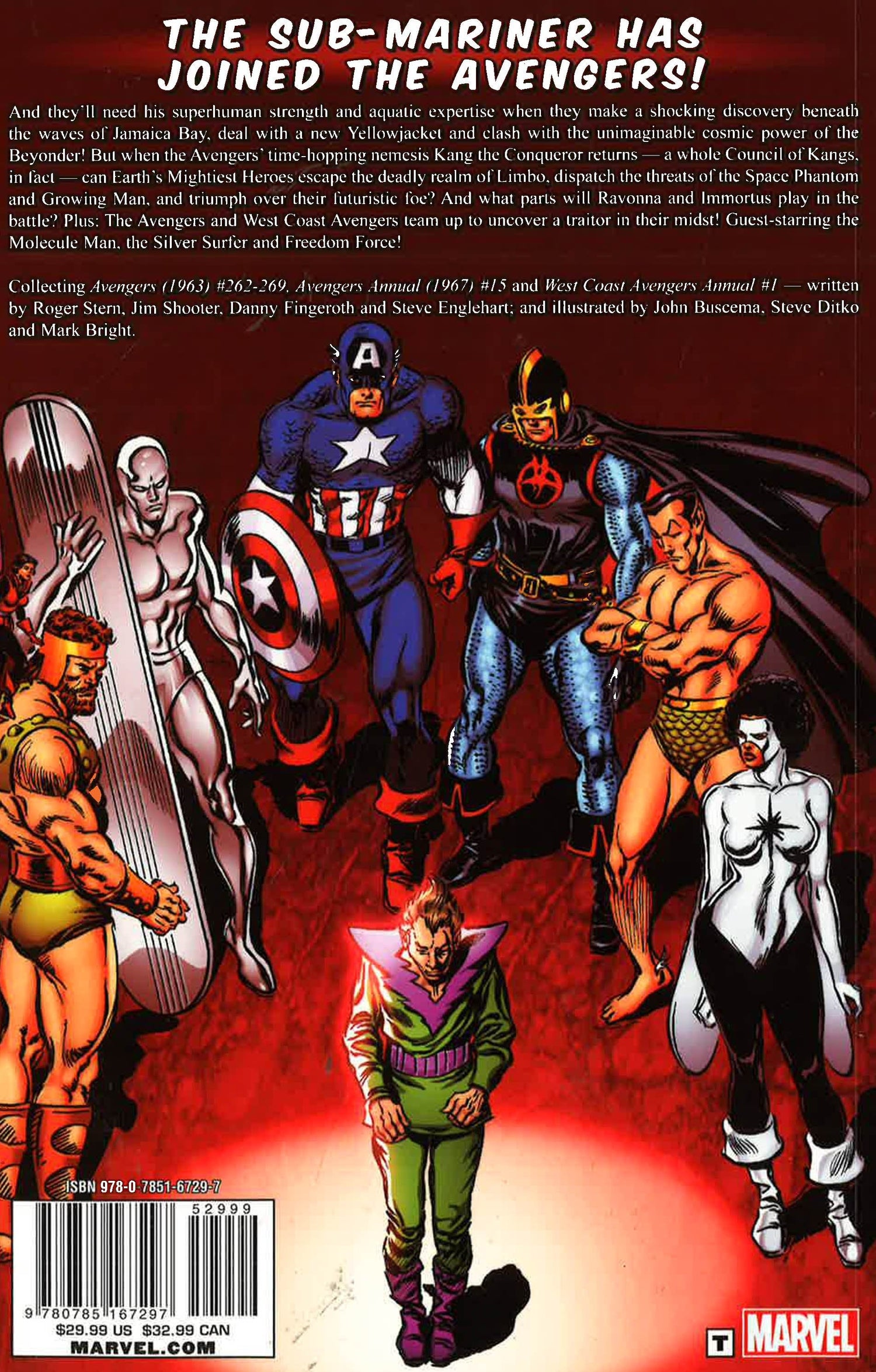 The Sub-Mariner has joined the Avengers! And they'll need his superhuman strength and aquatic expertise when they make a shocking discovery beneath the waves of Jamaica Bay, deal with an all-new Yellowjacket, and clash with the unimaginable cosmic power of the Beyonder! But when the Avengers' time-hopping nemesis Kang the Conqueror returns - a whole Council of Kangs, in fact - can the Avengers escape the deadly realm of Limbo, dispatch the threats of the Space Phantom and the Growing Man, and triumph over their futuristic foe? And what parts will Ravonna and Immortus play in the battle?
