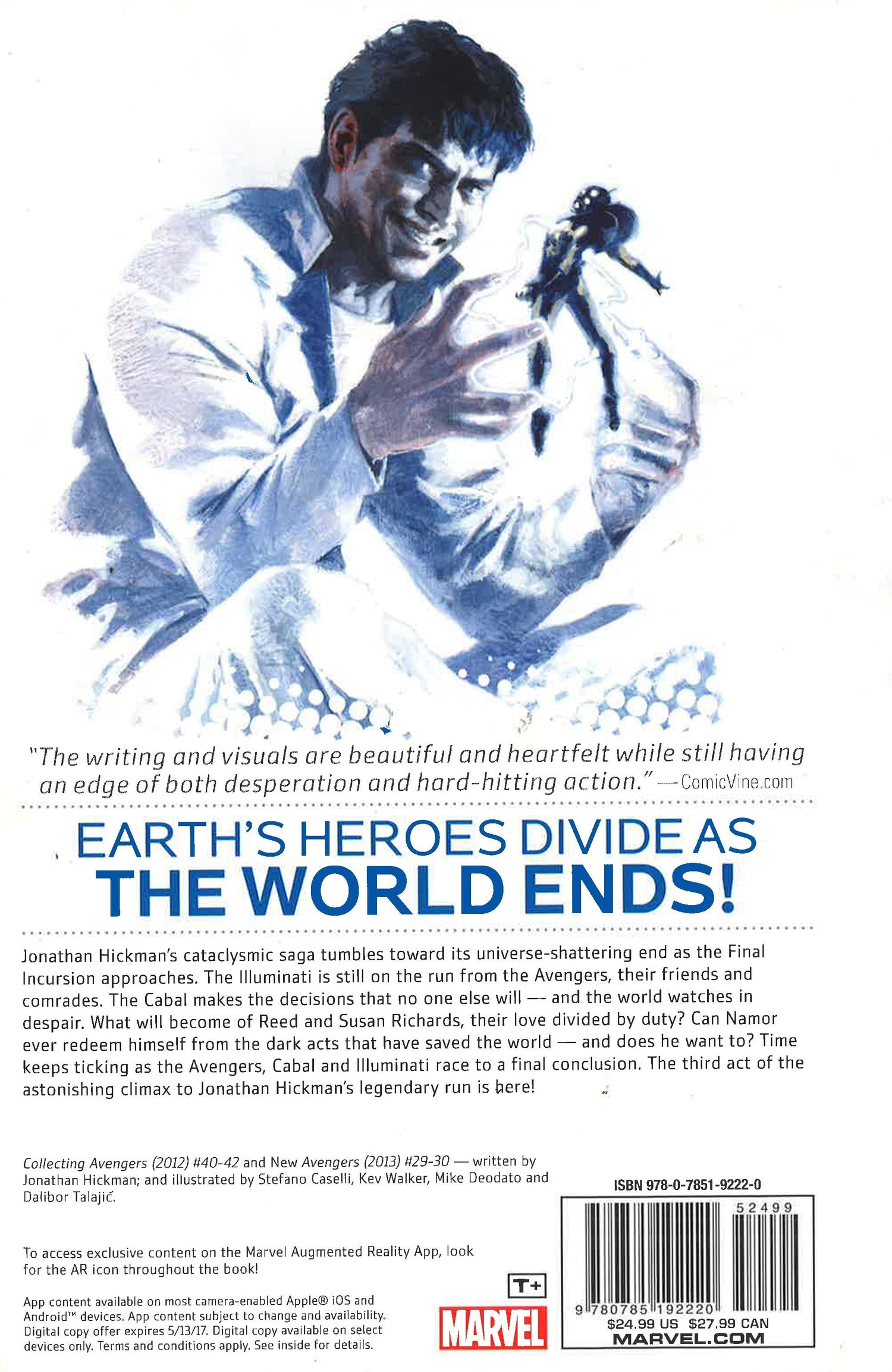For Earth's Mightiest Heroes and the Illuminati, it has all been building to this. After two years of carefully crafting his cataclysmic saga, writer Jonathan Hickman jumps ahead eight months to the grand finale, the honest-to-goodness immediate future of the Marvel Universe...and the day of the Final Incursion! After the revelation of the Illuminati's desperate, world-destroying actions, the Avengers are fragmented! What has become of Earth's Mightiest Heroes over the past eight months? What will happen when the Avengers, Illuminati and Cabal clash? And have all the battles they've endured, and the sacrifices they've made, prepared either group for the inevitable moment where time runs out for everybody? The third act of the astonishing climax to Jonathan Hickman's legendary run is here!