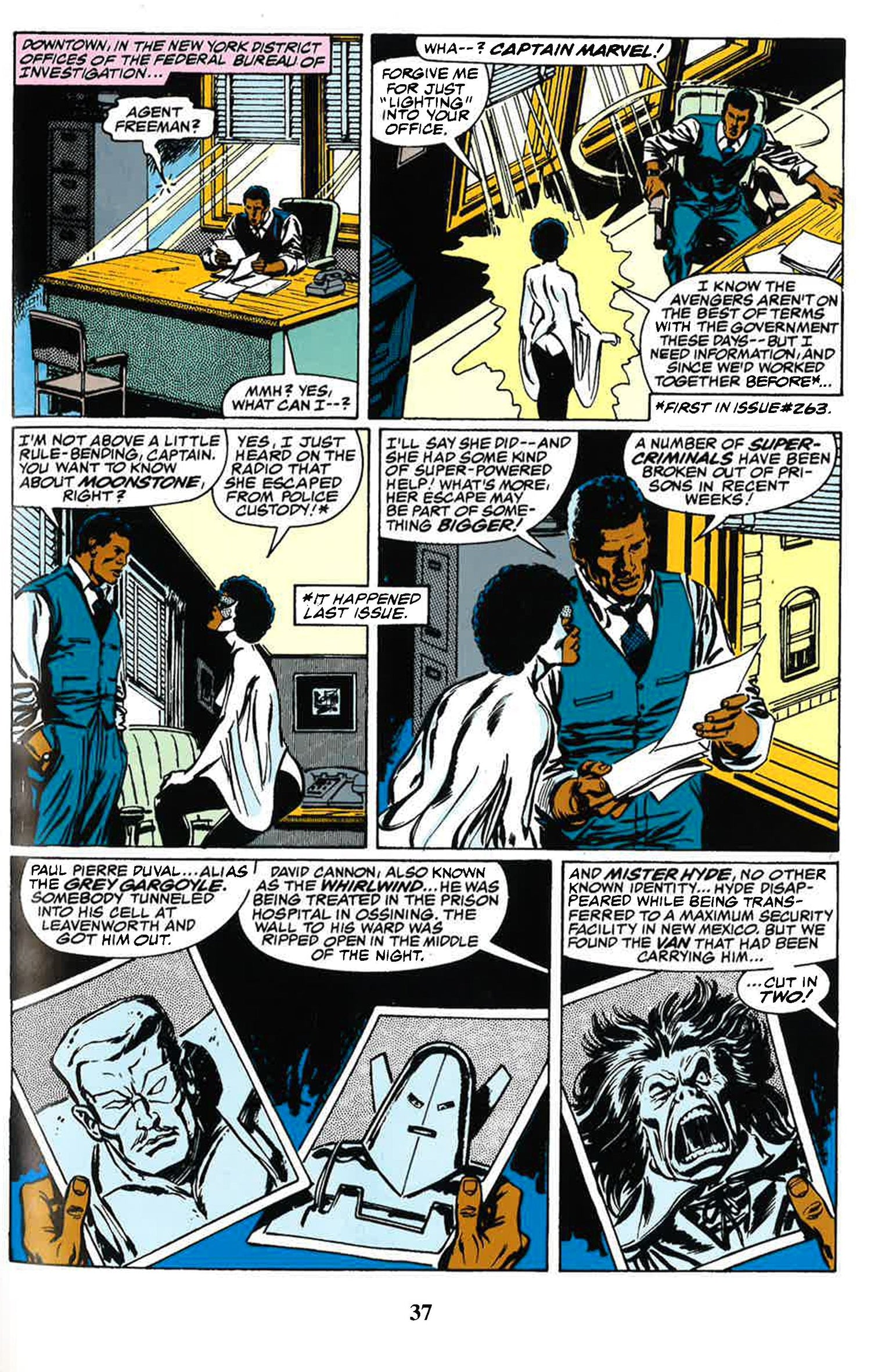 Home are the heroes, but the villains are waiting for them! Avengers Mansion becomes the site of one of the team's greatest battles when Baron Zemo's Masters of Evil take down Earth's Mightiest Heroes one by one, one seemingly forever! Plus: an odyssey of Avengers, Alpha Flight and Atlantean civil war! Guest-starring Ant-Man, Doctor Druid and Paladin, later of Thunderbolts fame!
