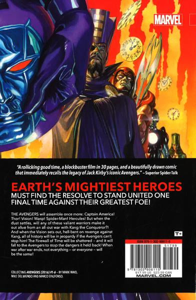 The time has come! Their ranks shattered by Civil War, their spirits weighted down by a toll both personal and spiritual, Earth's Mightiest Heroes must find the resolve to stand united one final time against their greatest foe! The Avengers will assemble once more: Captain America! Thor! The Vision! The Wasp! Spider- Man! Hercules! But when the dust settles, will any of these valiant warriors make it out alive from...Kang War One? And when the Vision sets out hell-bent on revenge against the Conqueror, if the Avengers can't hold the synthezoid back, all of history is in jeopardy! COLLECTING: AVENGERS 1-6