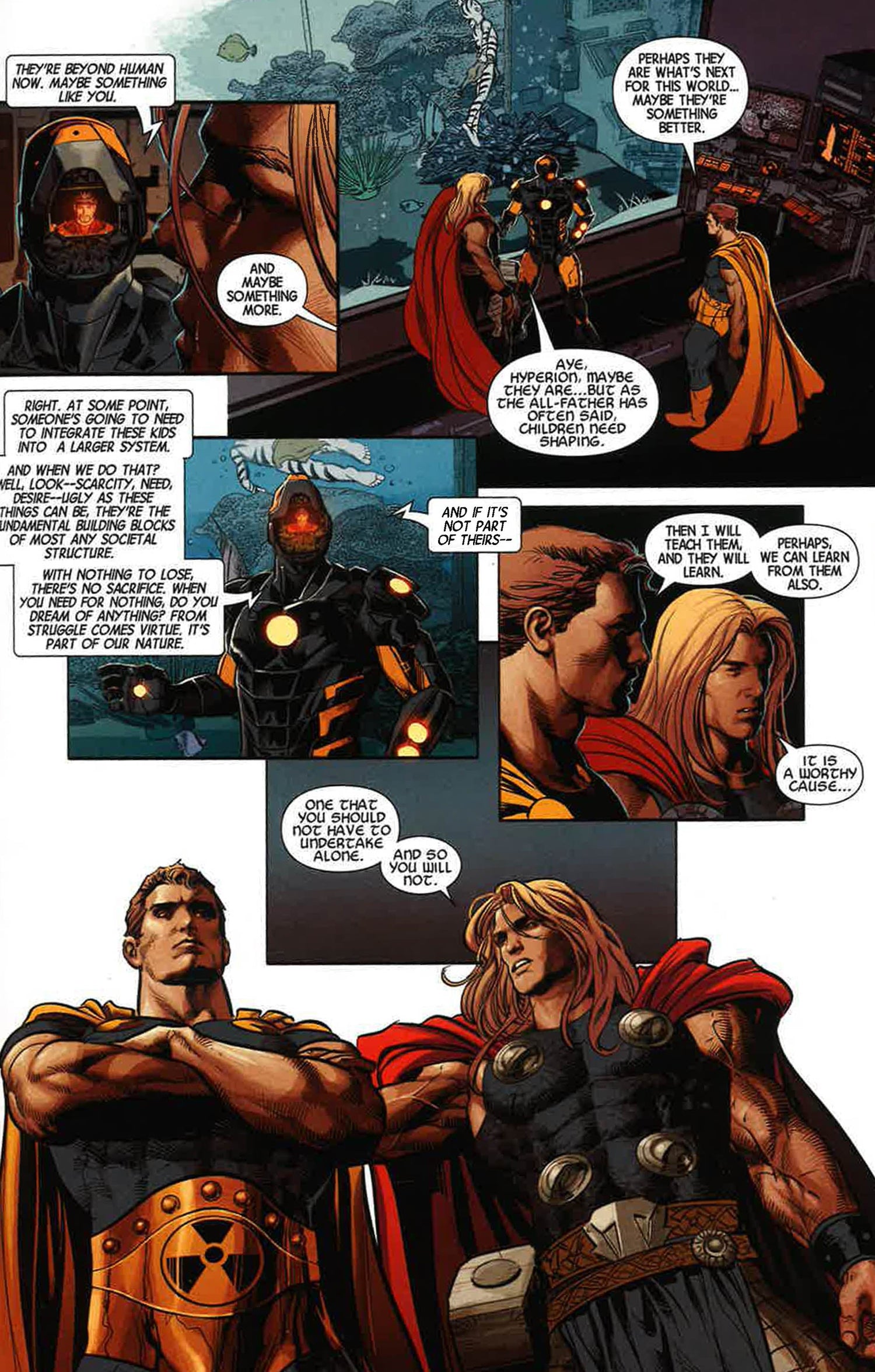 The High Evolutionary stakes his claim on the Children of the Sun. Hyperion learns the true cost of the decisions he's made at the Origin Site in the Savage Land. The Return of techno-titan Terminus.