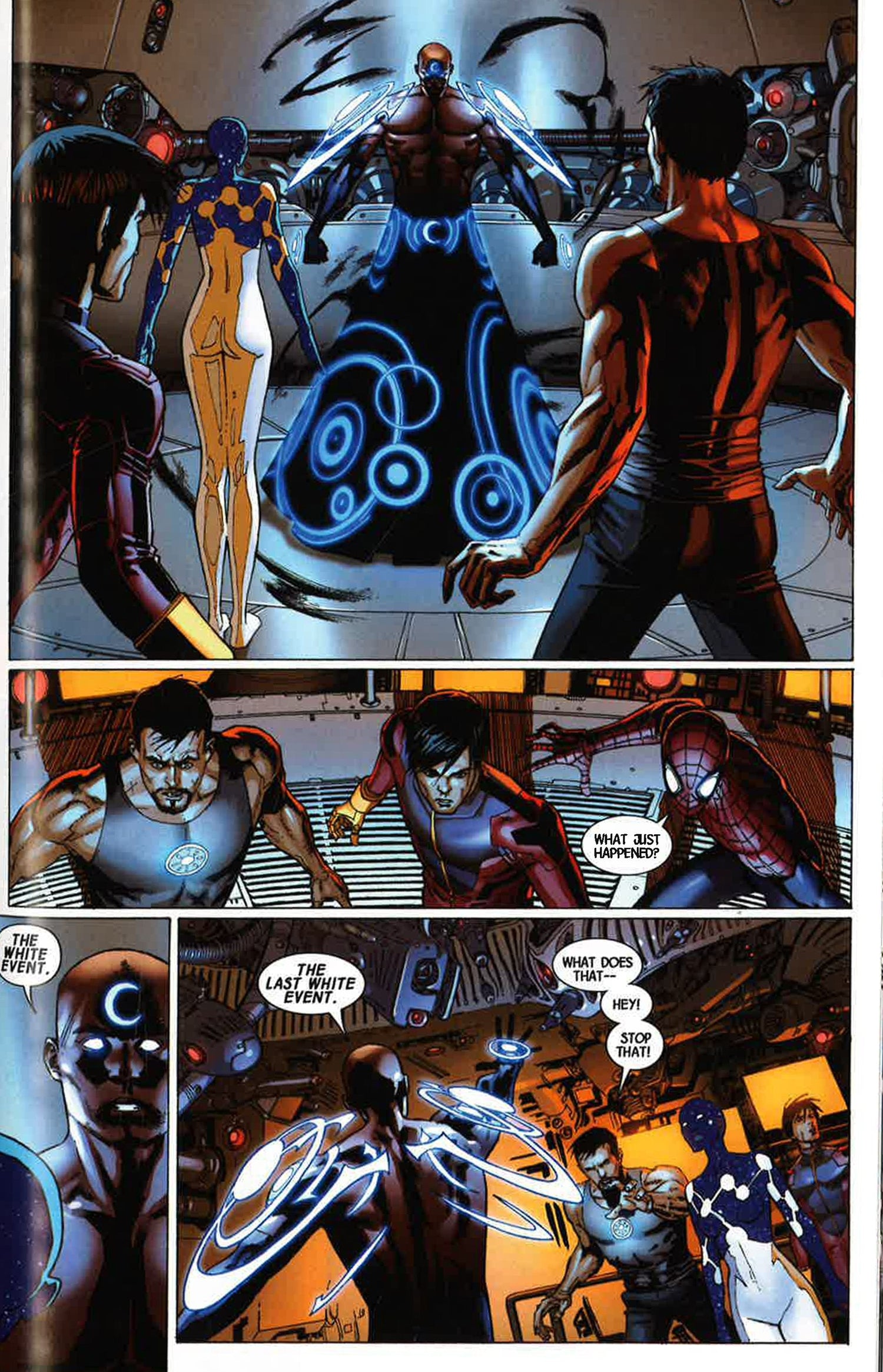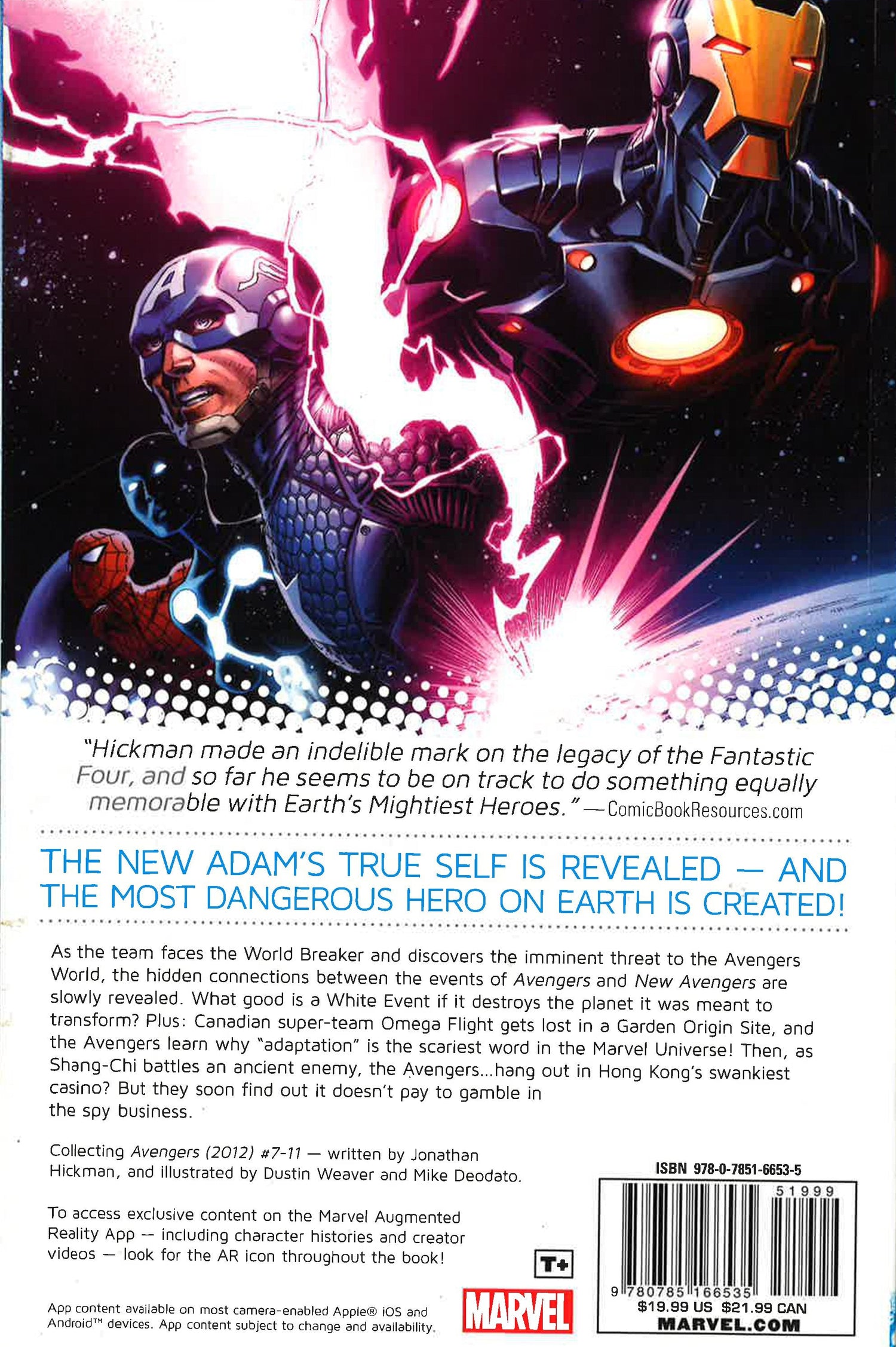The Avengers scramble to deal with the threat of another Universal System as the New Adam's true self is revealed - and the most dangerous hero on Earth is created! As the team faces the World Breaker and discovers the imminent threat to the Avengers World, the hidden connections between the events of Avengers and New Avengers are slowly revealed. What good is a White Event if it destroys the planet it was meant to transform? Plus: Canadian super-team Omega Flight gets lost in a Garden Origin Site, and the Avengers learn why "adaptation" is the scariest word in the Marvel Universe! Then, as Shang-Chi battles an ancient enemy, the Avengers...hang out in Hong Kong's swankiest casino? But when AIM arrives, they soon find out it doesn't pay to gamble in the spy business!