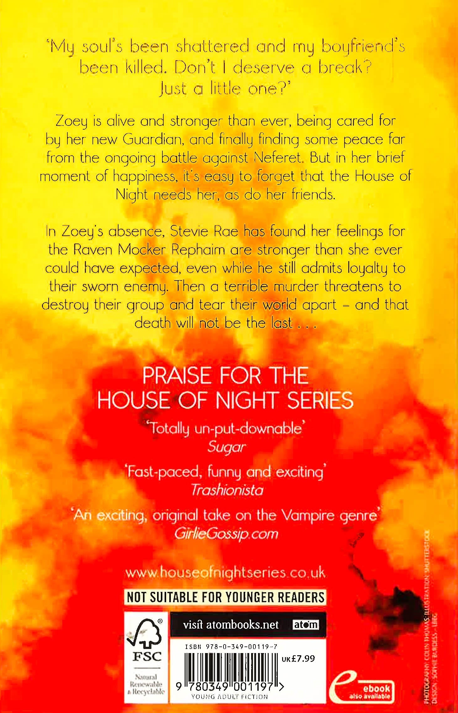 My soul's been shattered and my boyfriend's been killed. Don't I deserve a break? Just a little one?' Zoey is alive and stronger than ever, being cared for by her new Guardian, and finally finding some peace far from the ongoing battle against Neferet. But in her brief moment of happiness, it's easy to forget that the House of Night needs her, as do her friends. In Zoey's absence, Stevie Rae has found her feelings for the Raven Mocker Rephaim are stronger than she ever could have expected, even while he still admits loyalty to their sworn enemy. Then a terrible murder threatens to destroy their group and tear their world apart - and that death will not be the last...