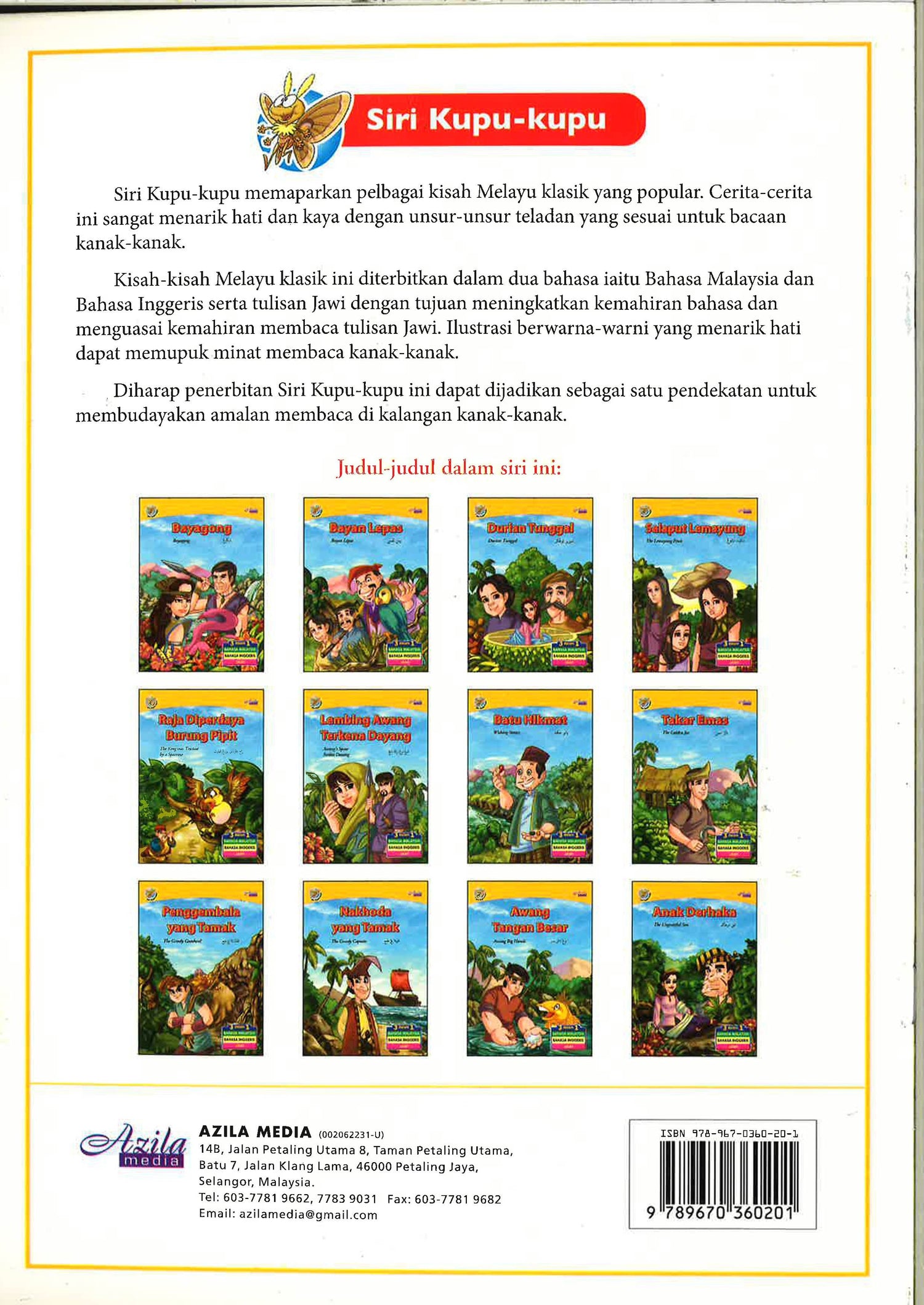 Siri Kupu-kupu memaparkan pelbagai kisah Melayu klasik yang popular. Cerita-cerita ini sangat menarik hati dan kaya dengan unsur-unsur teladan yang sesuai untuk bacaan kanak-kanak. Kisah-kisah Melayu klasik ini diterbitkan dalam dua bahasa iaitu Bahasa Malaysia dan Bahasa Inggeris serta tulisan Jawi dengan tujuan meningkatkan kemahiran bahasa dan menguasai kemahiran membaca tulisan Jawi. Illustrasi berwarna-warni yang menarik hati dapat memupuk minat membaca kanak-kanak