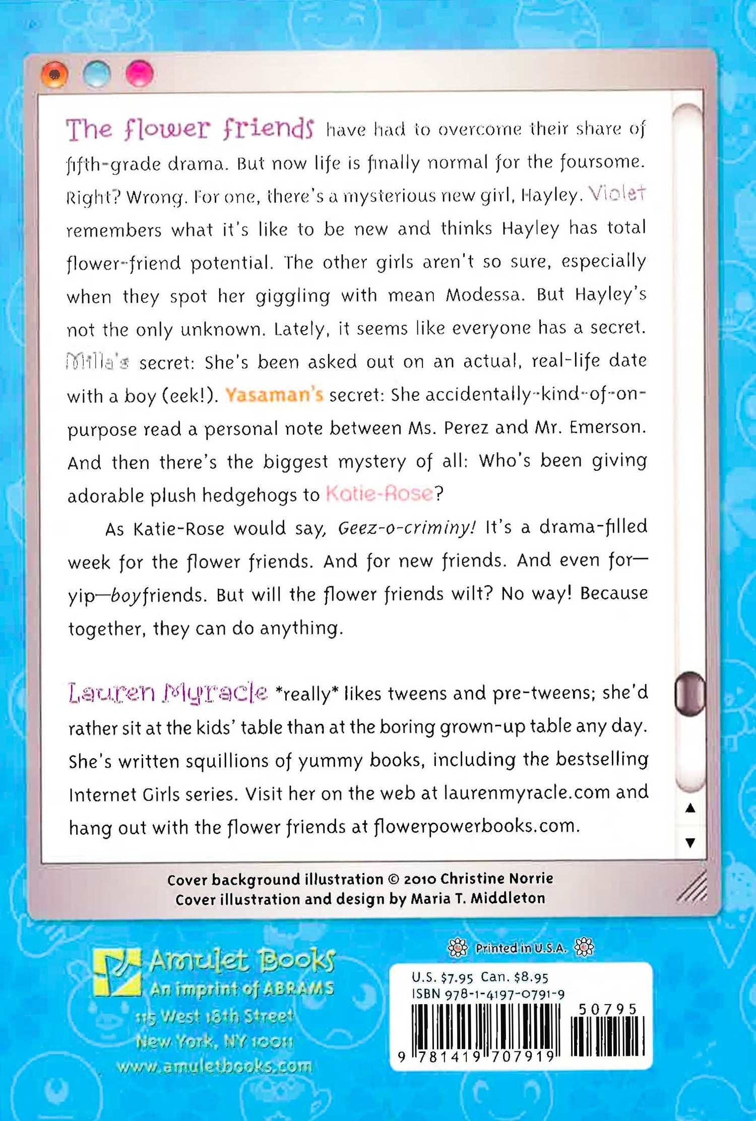 Katie-Rose, Milla, Yasaman, and Violet are happy to be a flower-friend foursome--until a new girl, Hayley, comes to school. Hayley is confident and mysterious and keeps the girls guessing. Katie-Rose worries she's just another Evil Chick, but Violet befriends Hayley and hopes the girls can make room for her in their group. Meanwhile, love is in the air as Milla works up the courage to go on an actual date with the adorable Max, and Katie-Rose receives ten plush hedgehogs from a secret admirer. Even quiet Yasaman gets tangled in the drama when she opens a note from Ms. Perez to Mr. Emerson and realizes it's--dun dun dun!--a love letter. Full of juicy secrets, budding romance, and--of course-- flower friendship, Awesome Blossom is a fun and satisfying conclusion to the Flower Power series that once again proves Lauren Myracle "has her finger firmly on the pulse of tween girldom" (Booklist).