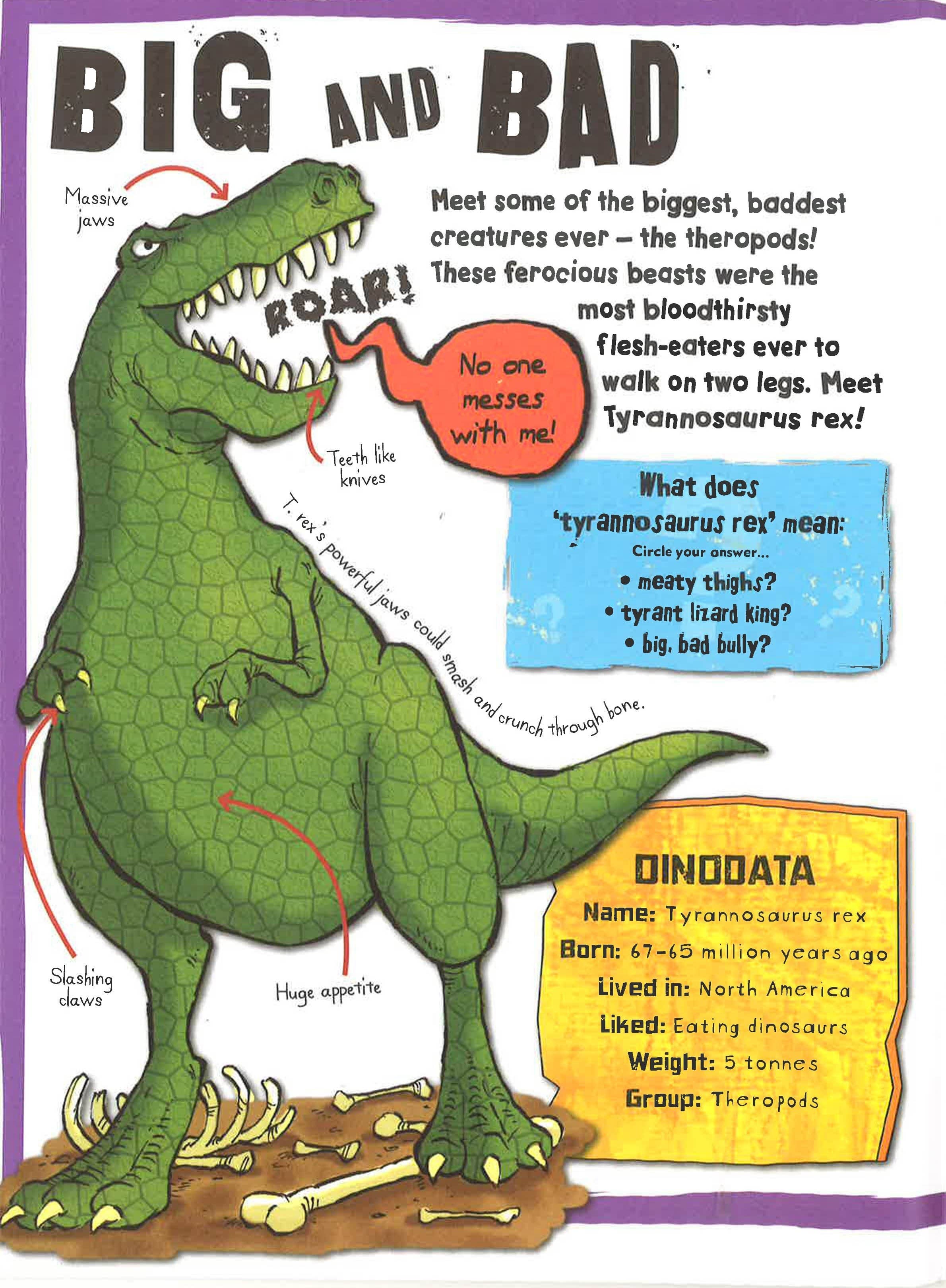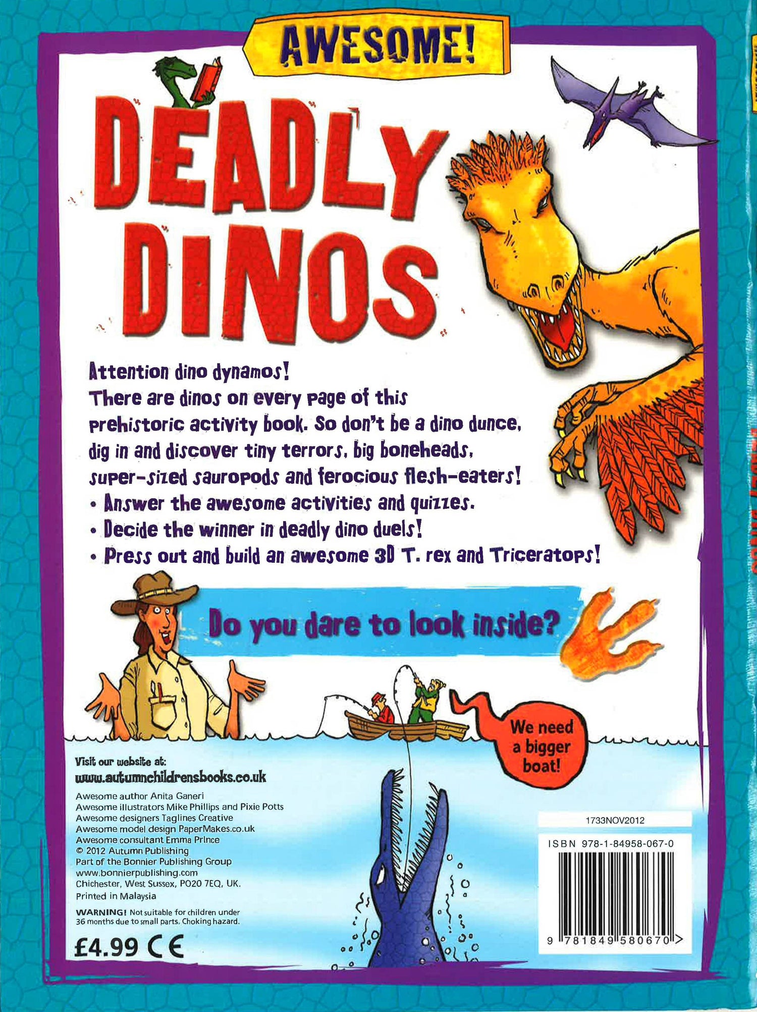 Dare you look inside? This incredible book is practically overflowing with astonishing stuff! This book presents fantastic facts and information on Deadly Dinos through fun activities and facts. So dig in and discover vicious velociraptors and terrible tyrannosaurs. Little monsters from the age of 7 are in for a treat!