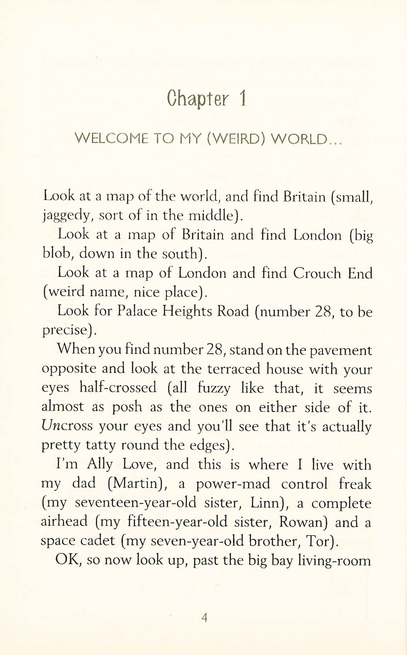 Two gorgeous books in one! Welcome to the weird and wonderful world of Ally Love, age 13. Think your family are fruitcakes? Meet the Love children! There's oh-so-perfect Linn (aged seventeen going on seventy), dippy Rowan, who is always away with the fairies, and space-cadet little brother Tor. Oh yes - and Ally. The normal one. It's not easy being normal in Ally's world...