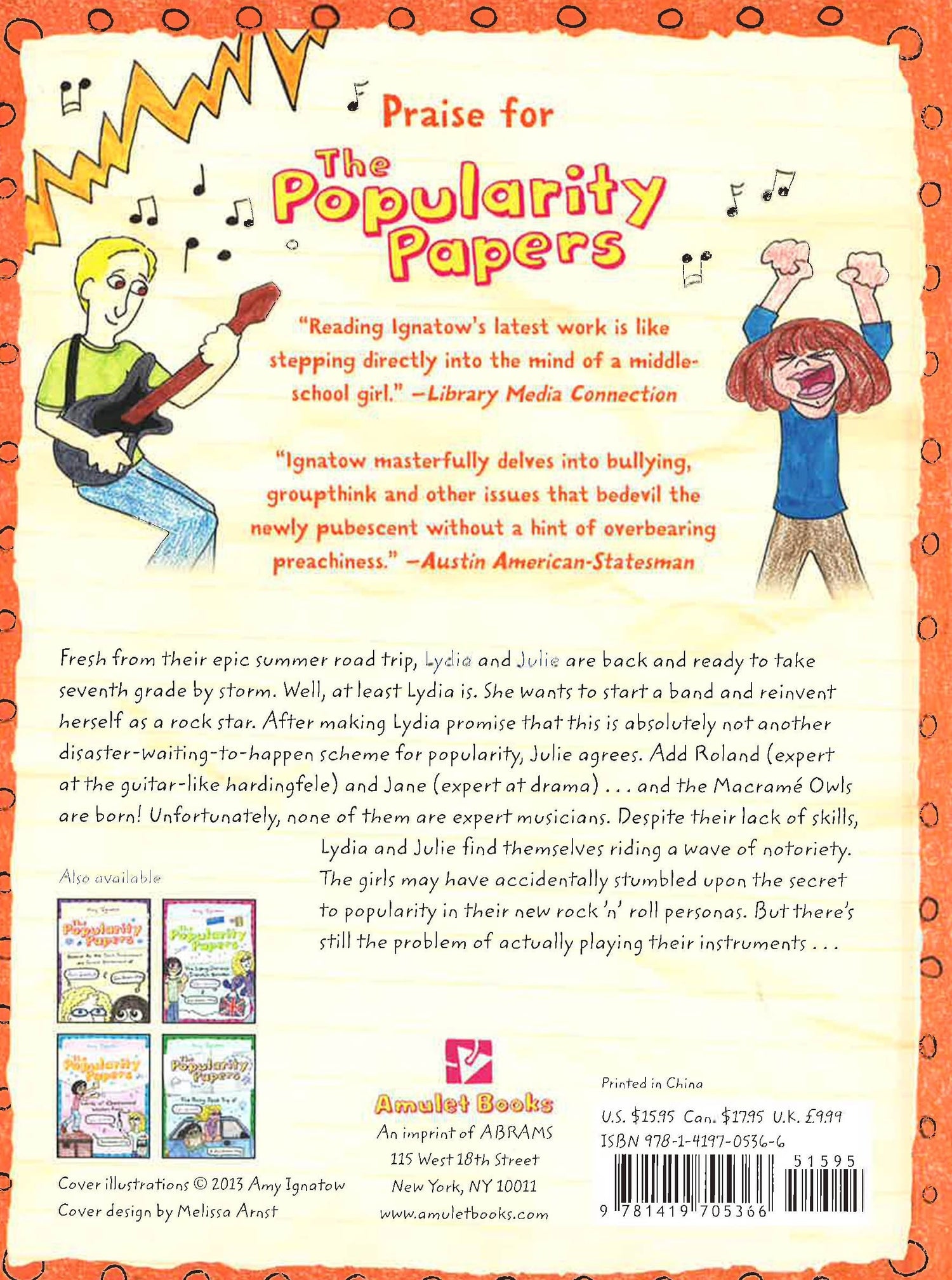 Fresh off their epic summer road trip, Lydia and Julie are back and ready to take seventh grade by storm. Well, Lydia is: She wants to start a band, and she's convinced Julie to join her. The Macrame Owls are joined by Roland (expert at the hardingfele) and Jane (expert at drama). None of them, unfortunately, are experts at rocking out. The band needs more practice, but instead Lydia and Julie find themselves riding an unexpected wave of popularity to their own belated birthday party. The girls may have accidentally stumbled upon the secret to popularity-if only the secret weren't so completely humiliating. Hilarious, observant, and honest, this installment of the series has all of Amy Ignatow's signature charm, while bringing our beloved heroines to a new turning point in their lives.Praise for The Popularity Papers: Book Five"Ignatow's illustrations (attributed to Julie), humorous comments, and the story's sticky situations make this a gregarious addition to the series."-Booklist