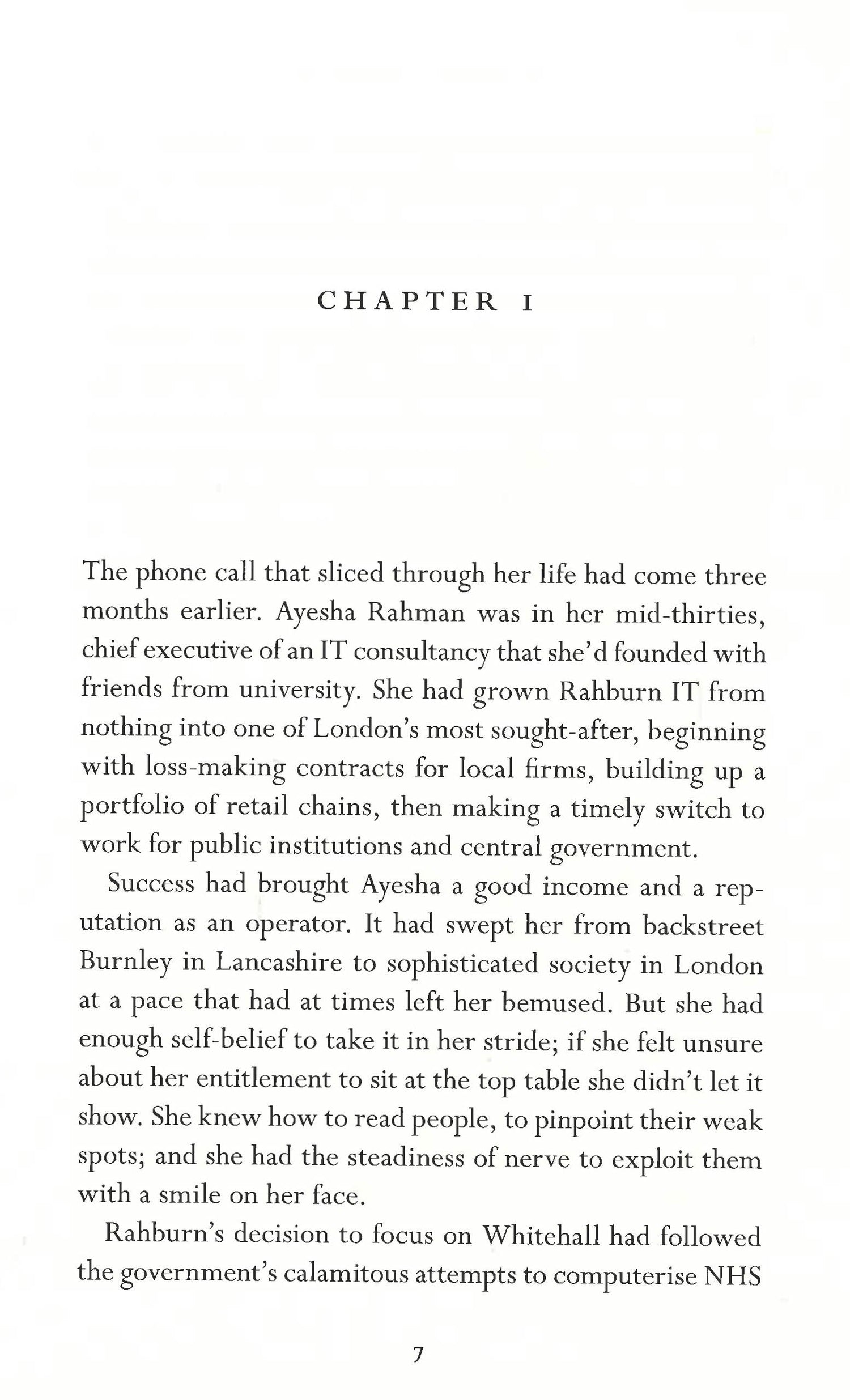 Ayesha's quest to find the truth takes her away from her safe English existence and into Pakistan, where she is met with threats, violence and smiling perjurers. She is warned that her life is in danger; powerful, ruthless men have reasons to want her silenced. But there are things she needs to know, that compel her to press on with her search for the truth.