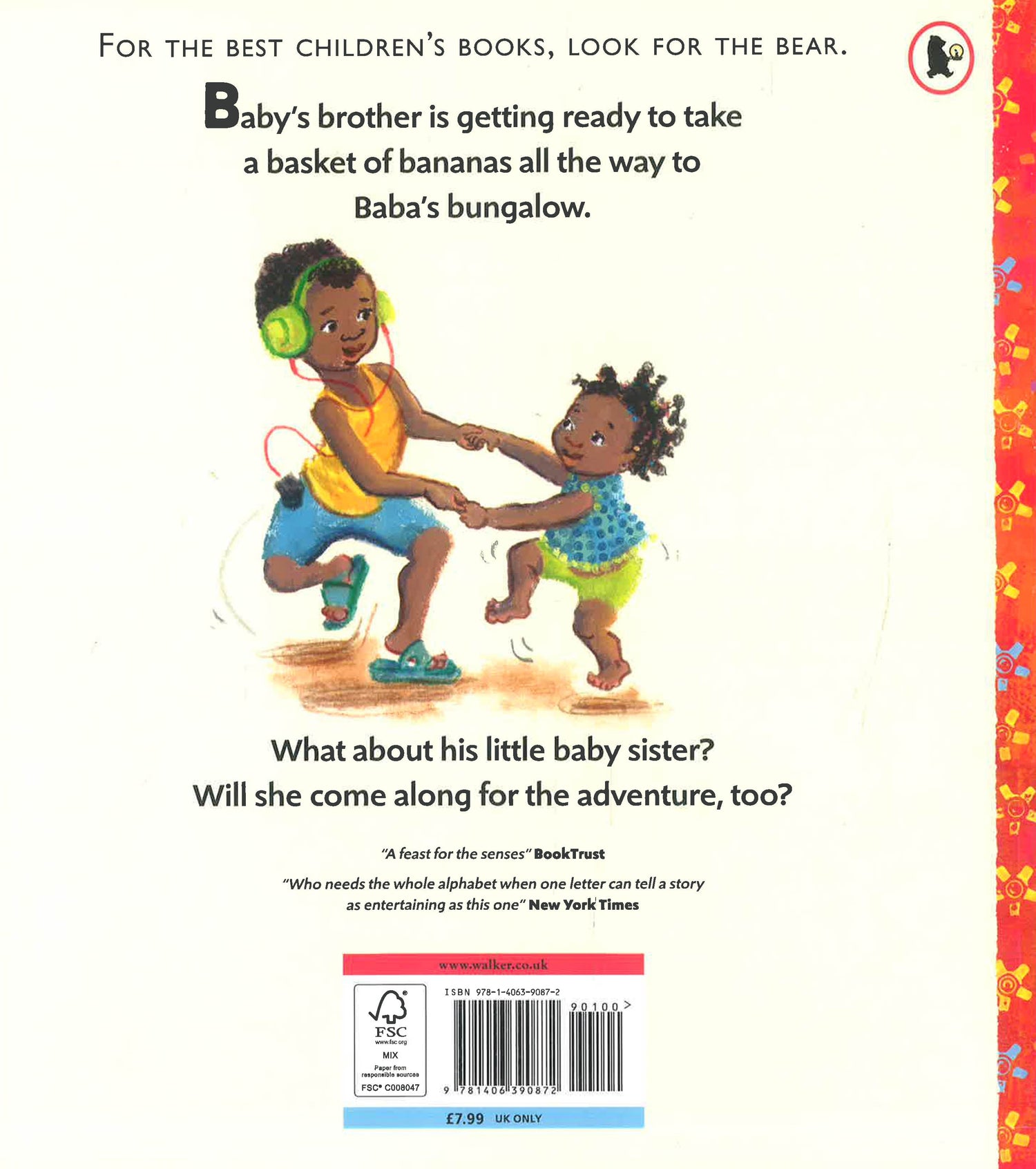 Baby's brother is getting ready to take a basket of bananas all the way to Baba's bungalow in the next village. He will have to go along the bumpy road, past the baobab trees, birds and butterflies, and all the way over the bridge. What he doesn't realize is that his cute, very curious baby sister is secretly coming along for the amazing bicycle ride, too! From the creators of Baby Goes to Market comes a beautiful, bright first book of words, perfect for pre-schoolers learning their ABC! Children will love sounding out the words in this playful, adventurous and vibrantly-illustrated story set in West Africa.