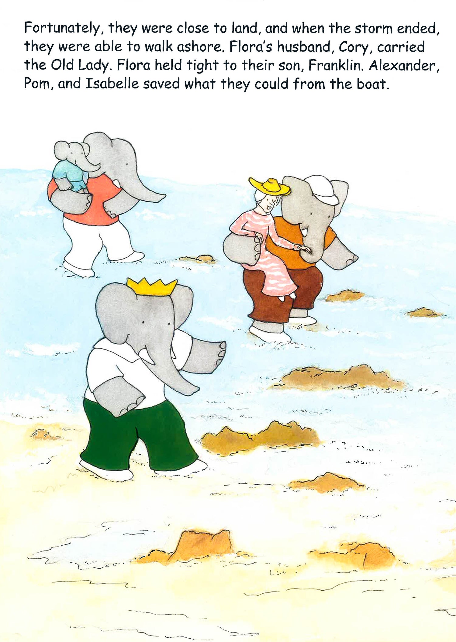 Babar and his family go on an ocean cruise; however, after a violent storm, the family ends up shipwrecked on a desert island. There, they meet fabulous creatures, enjoy the tropical locale and await their eventual rescue.