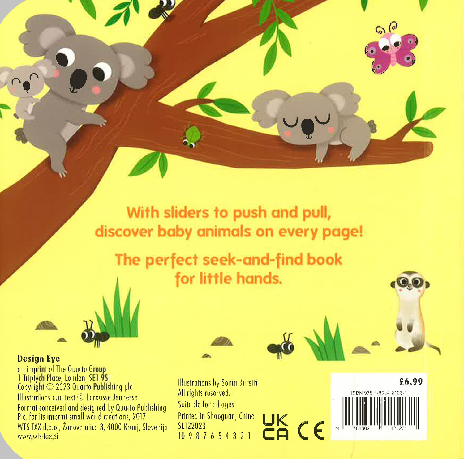 With sliders to push and pull, discover baby animals, jungle animals, magical creatures and dinosaurs on every page. The perfect seek-and-find book for little hands