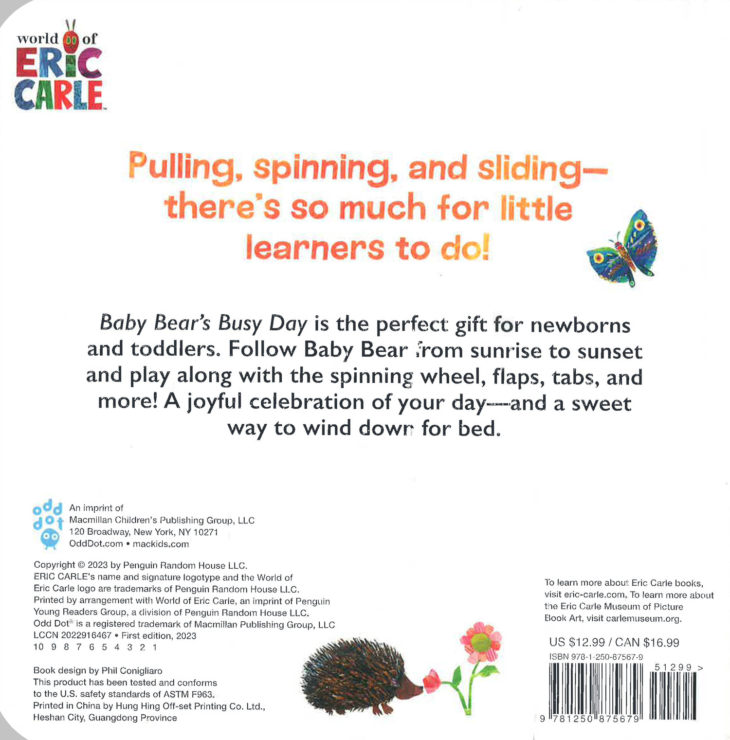 From Eric Carle's Brown Bear & Friends, Baby Bear's Busy Day is the perfect gift for newborns and toddlers. Your child will love playing with the spinning wheel, flaps, tabs, and more!