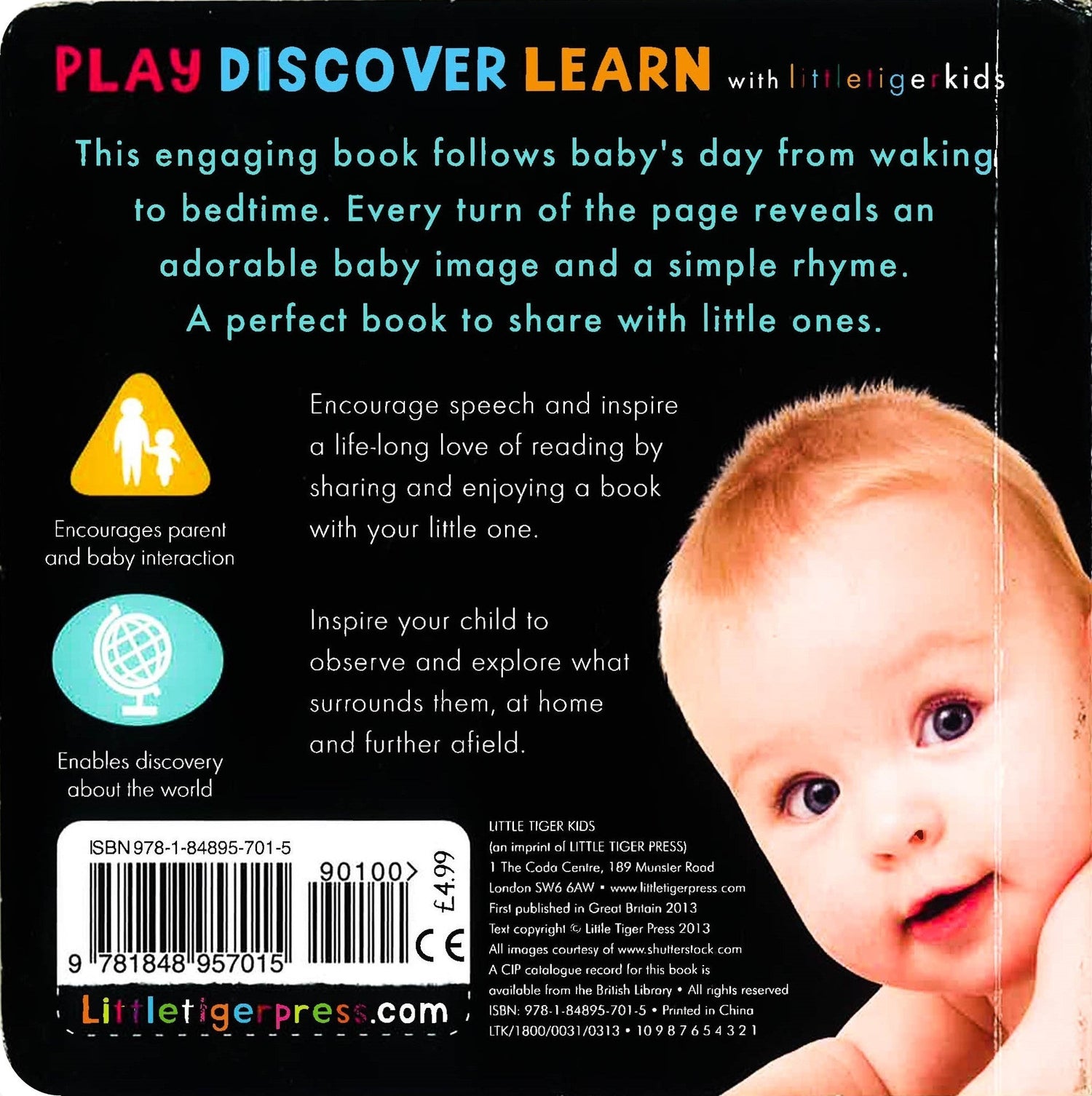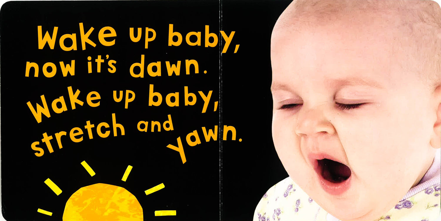 This engaging book follows baby's day from waking to bedtime. Every turn of the page reveals an adorable baby image and a simple rhyme. A perfect book to share with little ones.