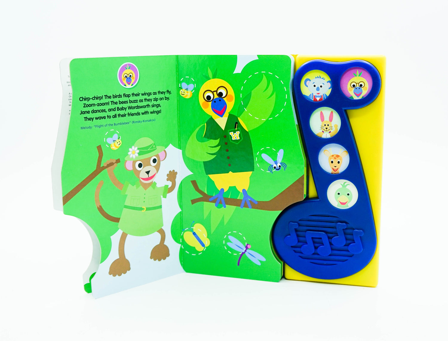 Short, simple melodies engage children in rhythm and pitch while song content and illustrations encourage outdoor activity.