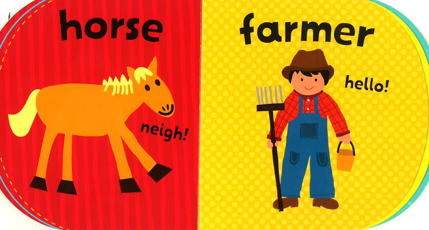 Enjoy first farmyard words for babies with this fun-to-touch board book. Add your own sound effects too! Oink oink! Little fingers will love exploring this playful and interactive book, packed with glossy, textured pictures and first words such as cat, duck, horse and more. Bloomsbury's Baby Look and Feel board books feature glossy, textured panels which babies will love to touch. Stunning artwork and simple text on every page make learning first words fun! Available in a range of young children's favourite topics, from animals to things that go.