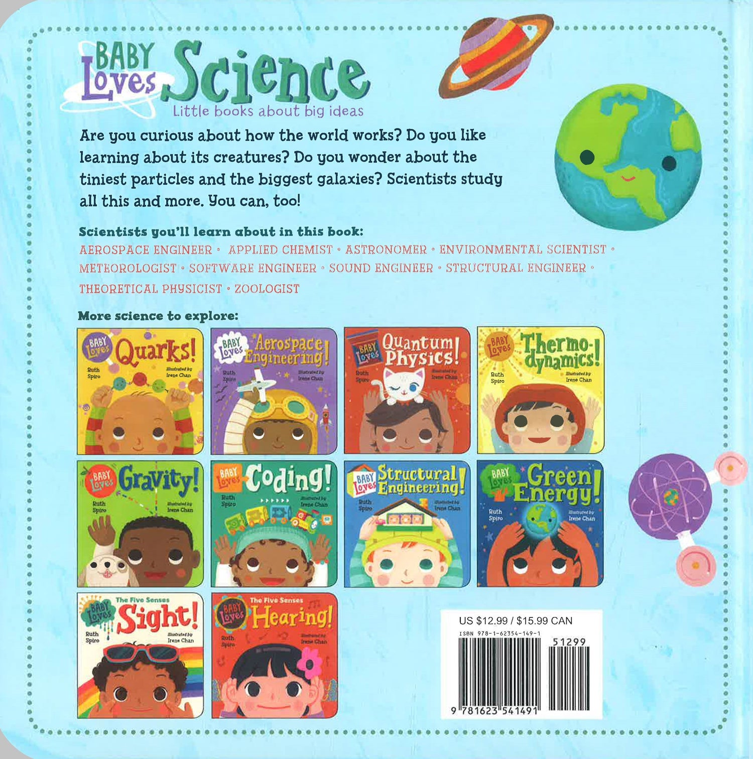 Baby loves to explore the world of science! What's next for Baby after learning about physics, engineering, computers, and the natural world? Becoming a scientist of course!